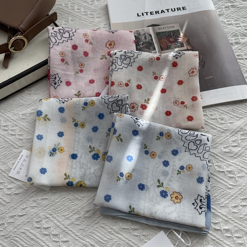 매달린 엘리베이터 캐슈 꽃 신선하고 아름다운 봄과 여름 스퀘어 스카프 여성면 통기성 다기능 스카프 터번 소프트스토어 가기