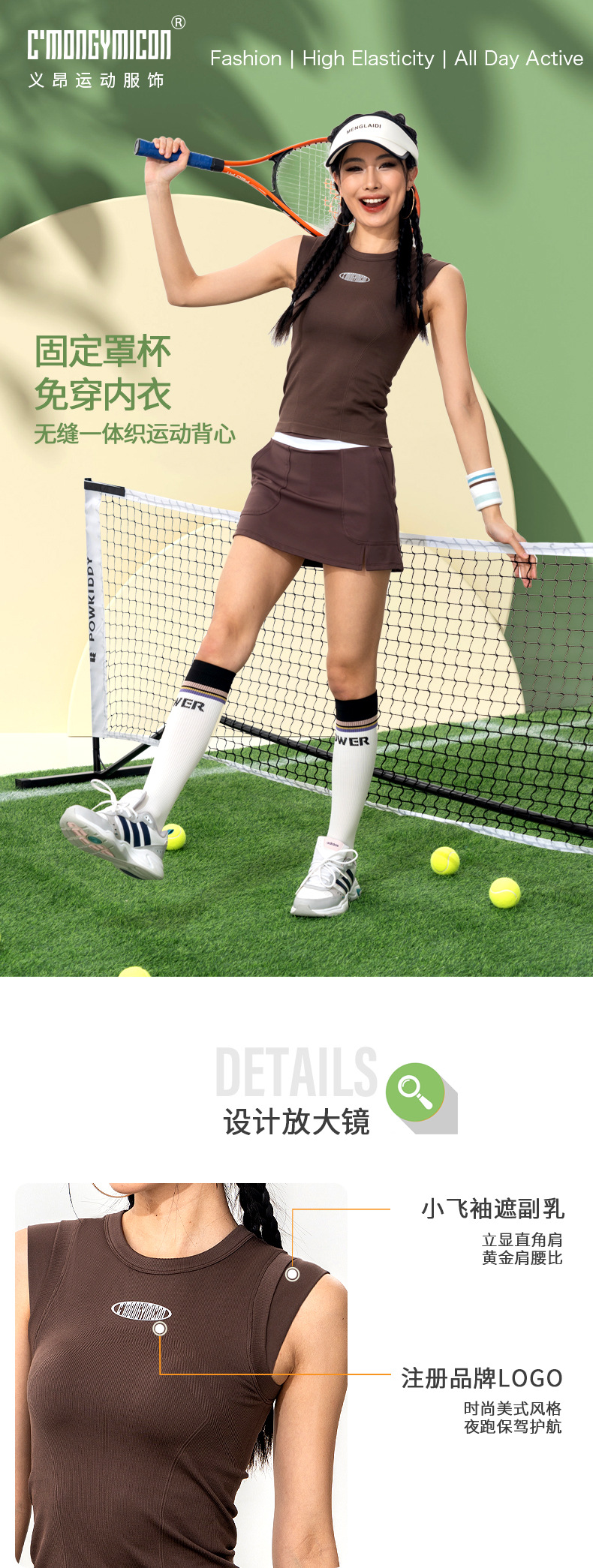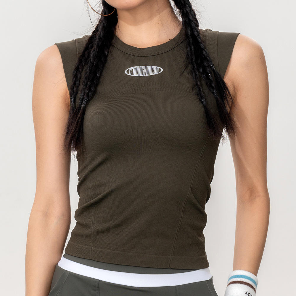 봄과 여름 새로운 원활한 원피스 짠 요가 세트 알몸 꽉 달리기 스포츠 조끼 고정 컵 피트니스 탑