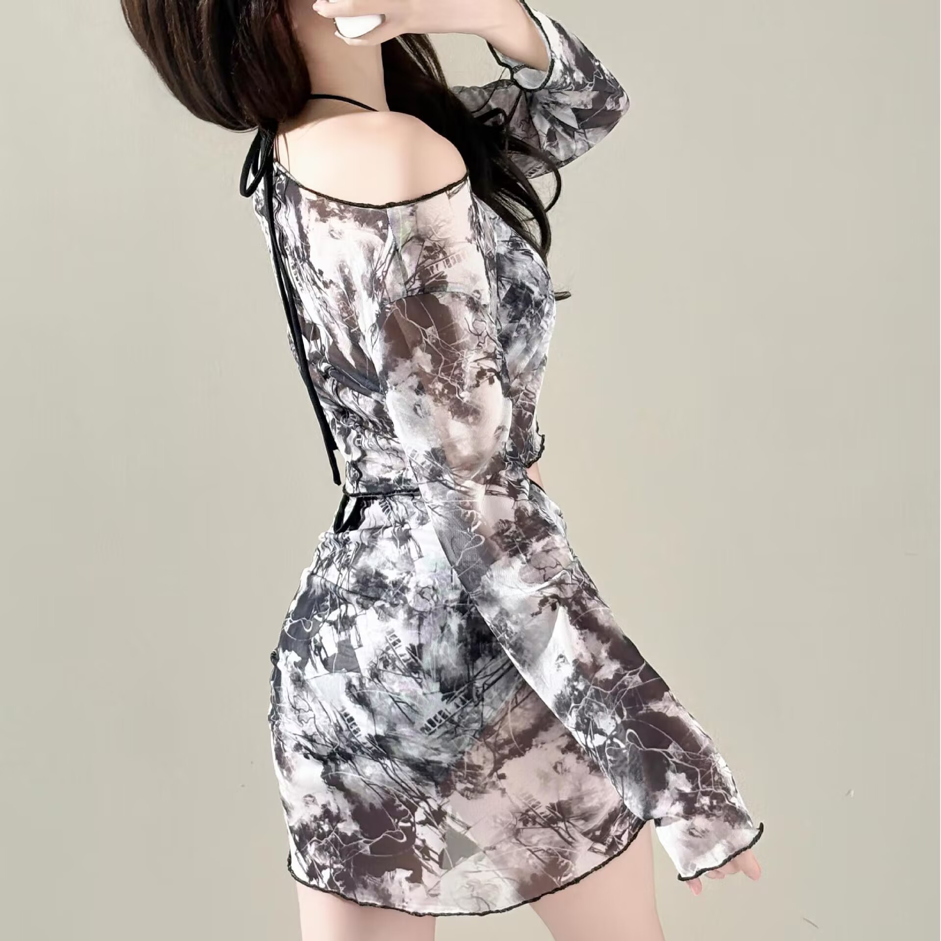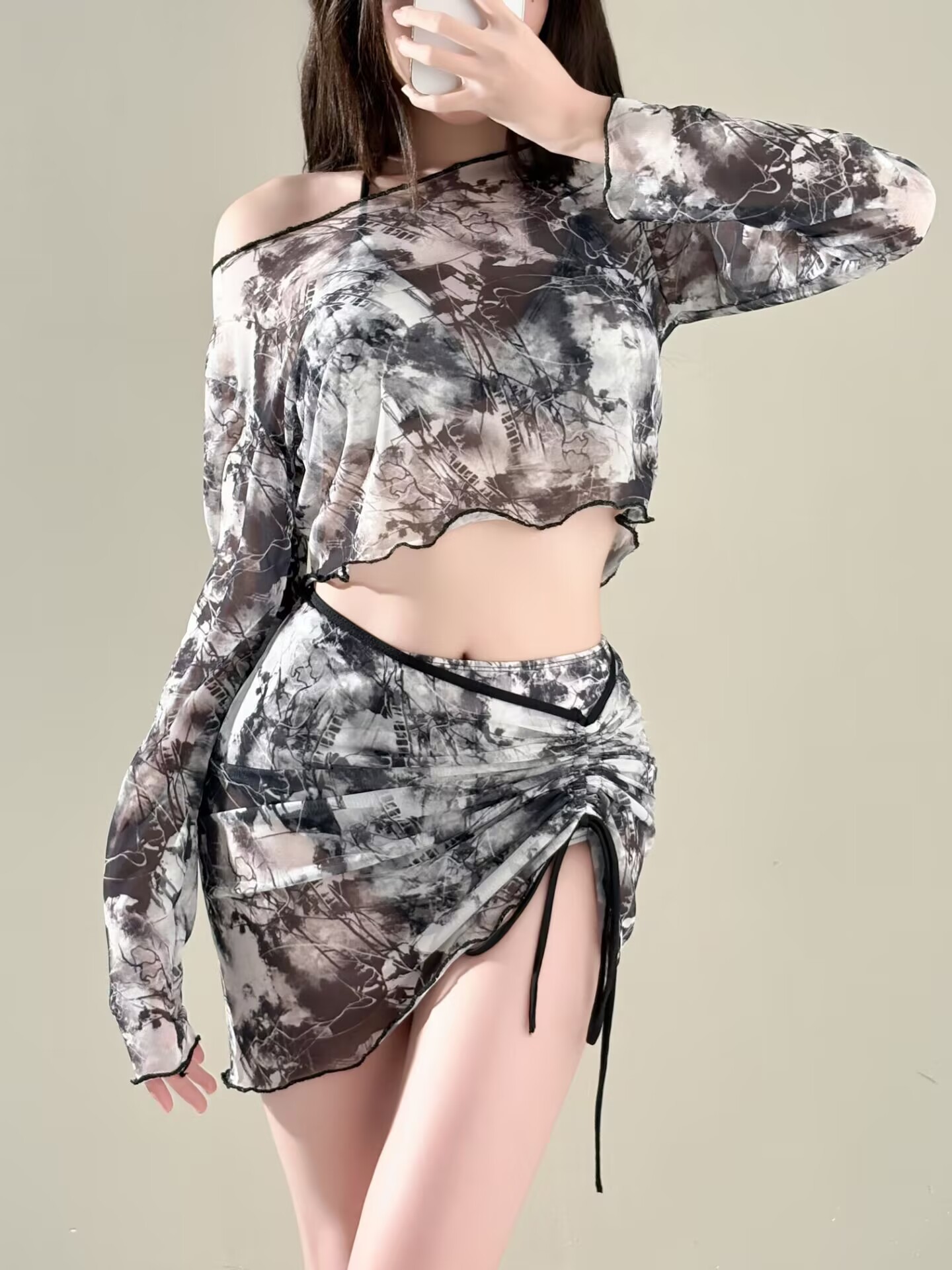 수영복 여성 섹시 스플릿 블라우스 비키니 4 피스 랩 스커트 브리프 스틸 브레이드 수집 휴가 온천 수영복