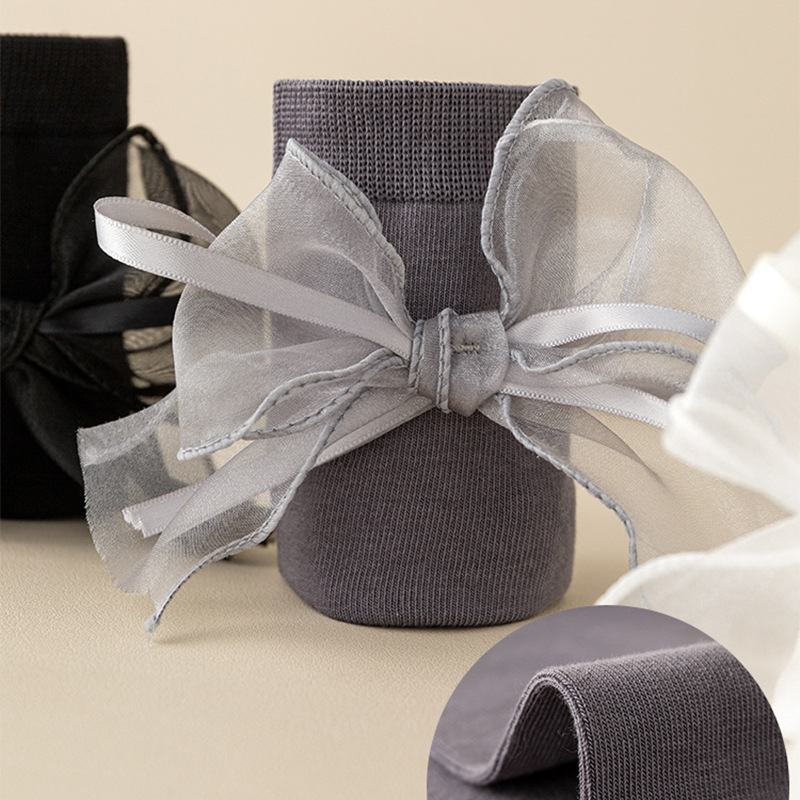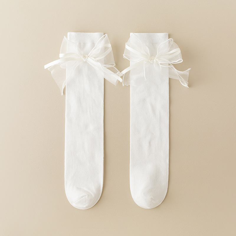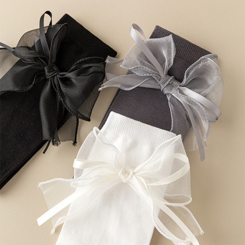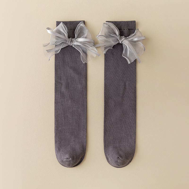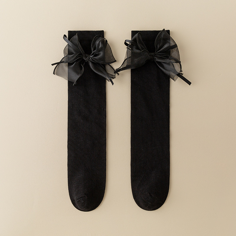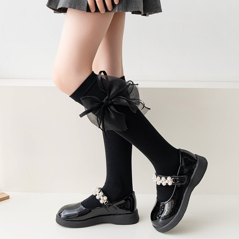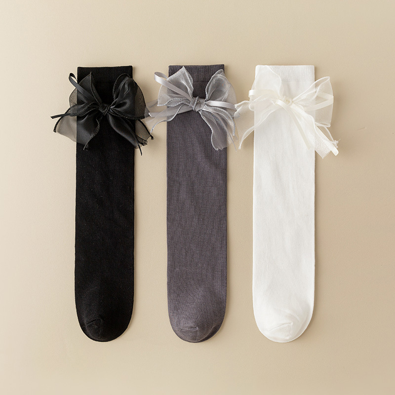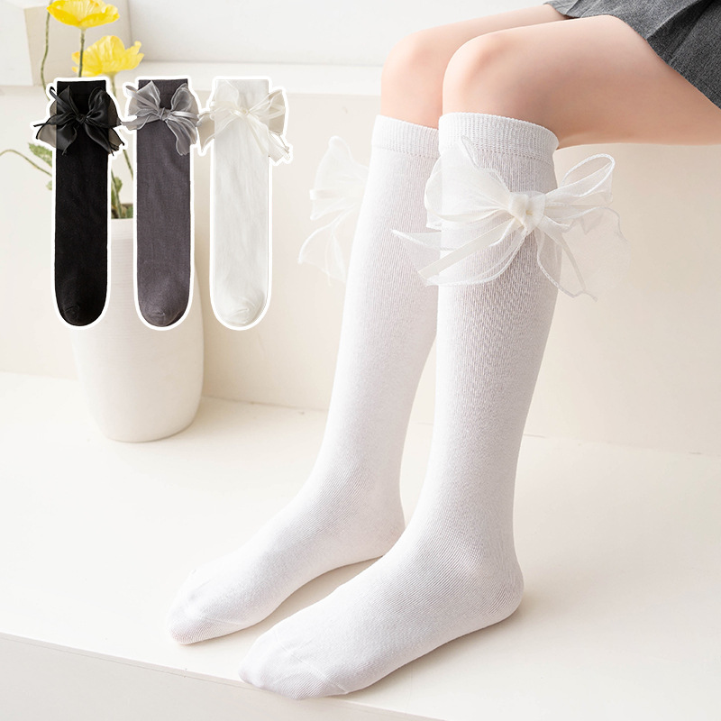 새틴 리본 Bowknot 어린이 스타킹 가을 어린 소녀 무릎 양말 솔리드 컬러 어린이 면화 긴 양말 공주 아기 종아리