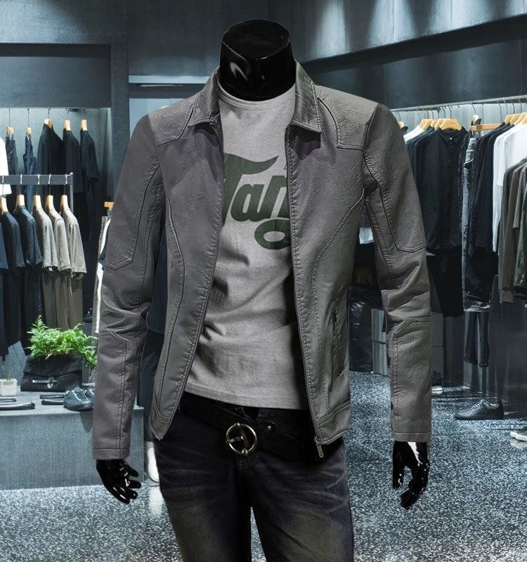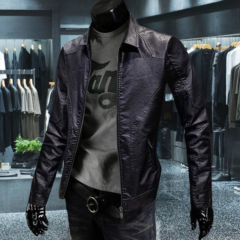 2025 남성 가죽 남성 가을과 겨울 새로운 복고풍 슬림 캐주얼 옷깃 잘 생긴 가죽 자켓 국경 공급스토어 가기
