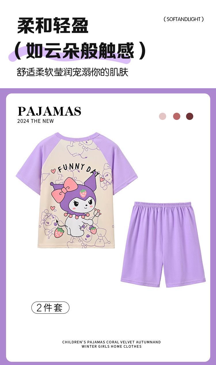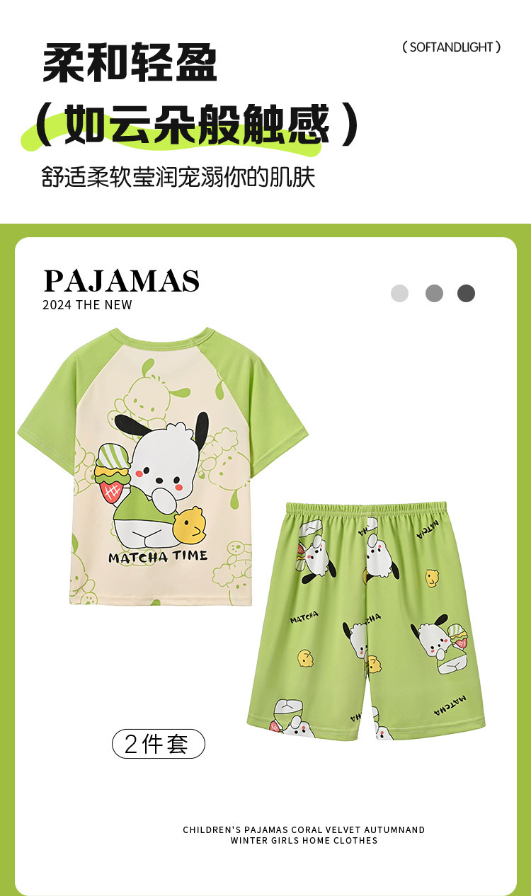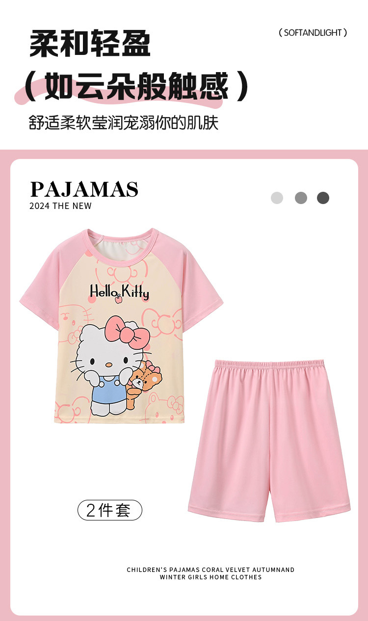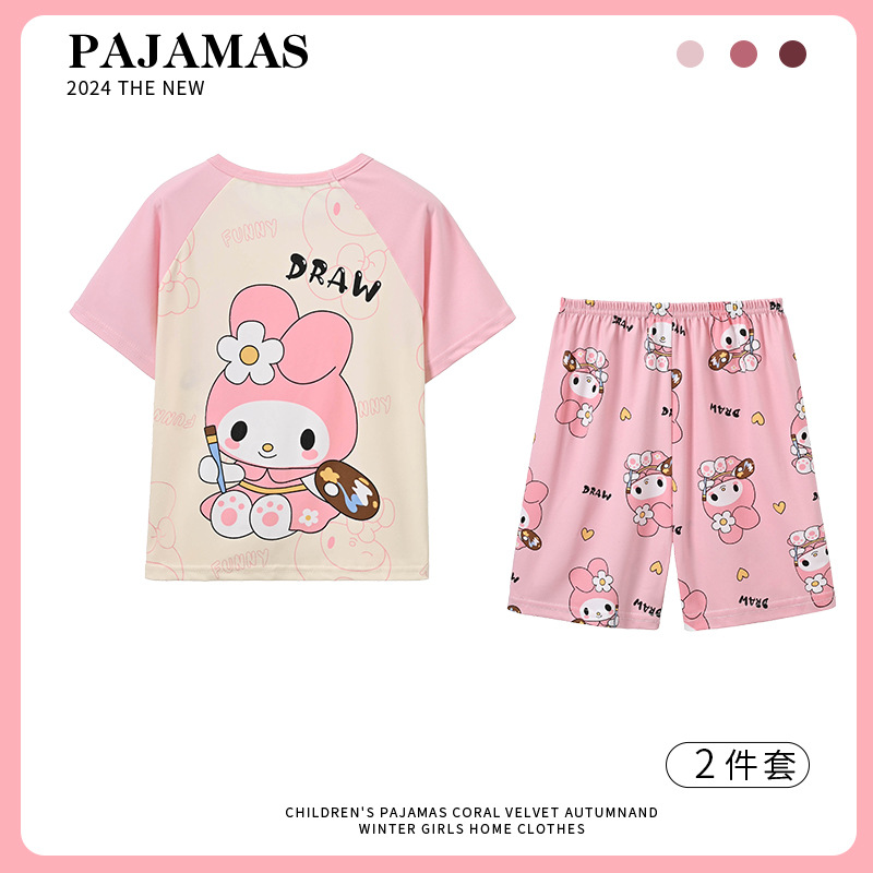 어린이 잠옷 여름 소녀 반팔 얇은 공주 스타일 소녀 만화 귀여운 큰 아이 에어컨 홈 의류 세트스토어 가기