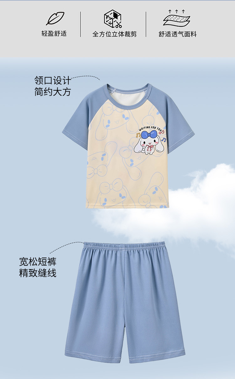 어린이 잠옷 여름 소녀 반팔 얇은 공주 스타일 소녀 만화 귀여운 큰 아이 에어컨 홈 의류 세트