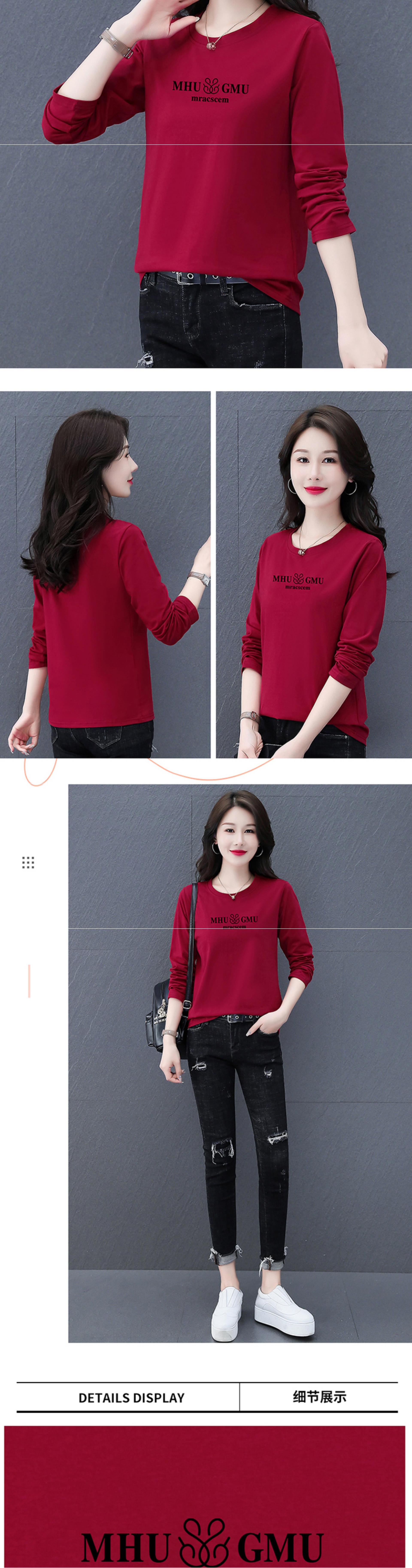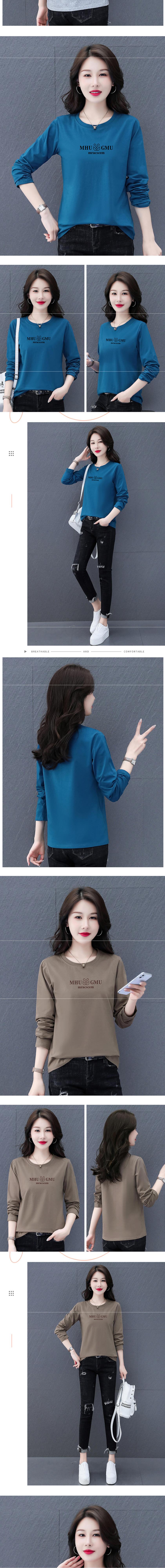 딱따구리 코튼 긴팔 티셔츠 여성용 얇은 2024 새로운 중년 어머니 봄과 가을 둥근 목베이스 셔츠 탑스토어 가기
