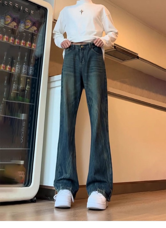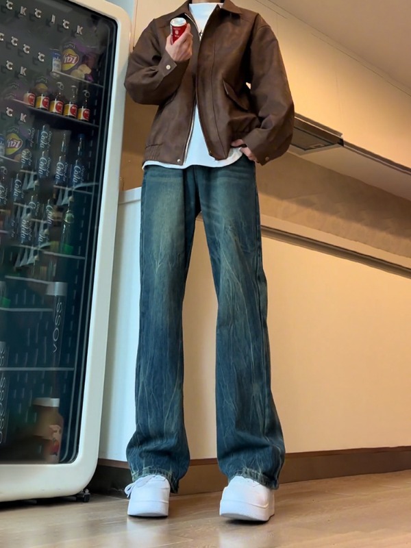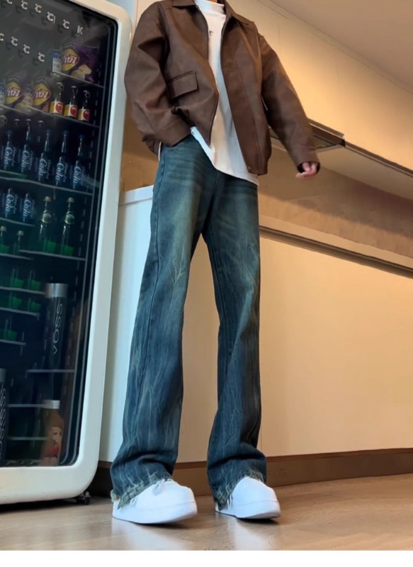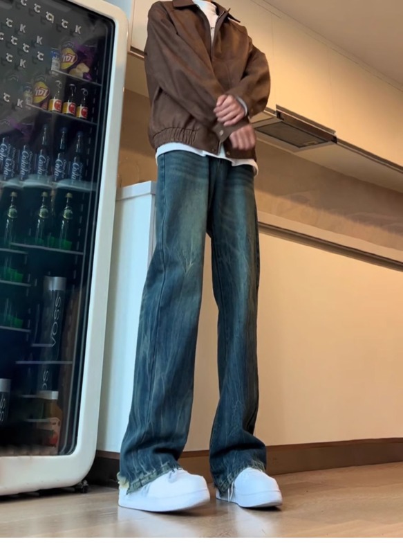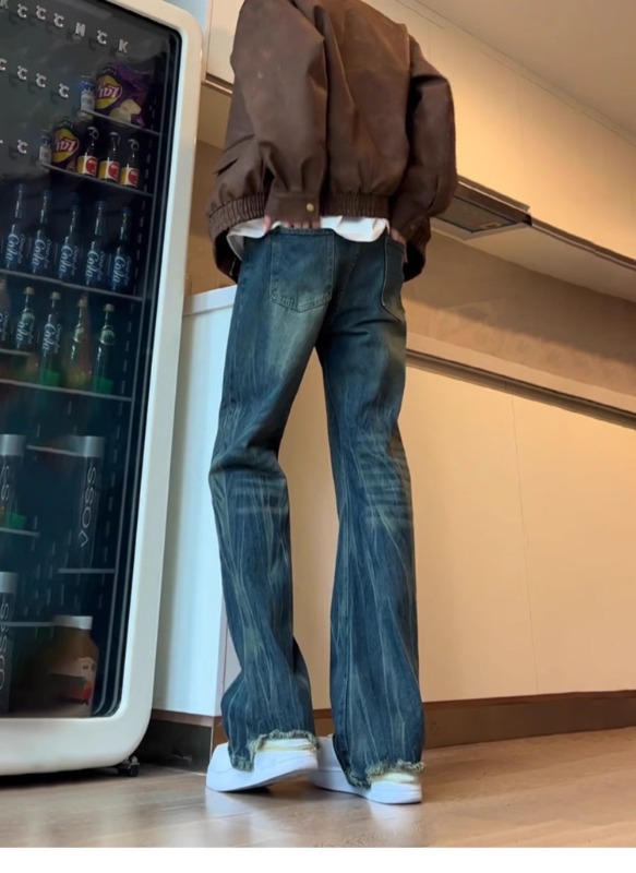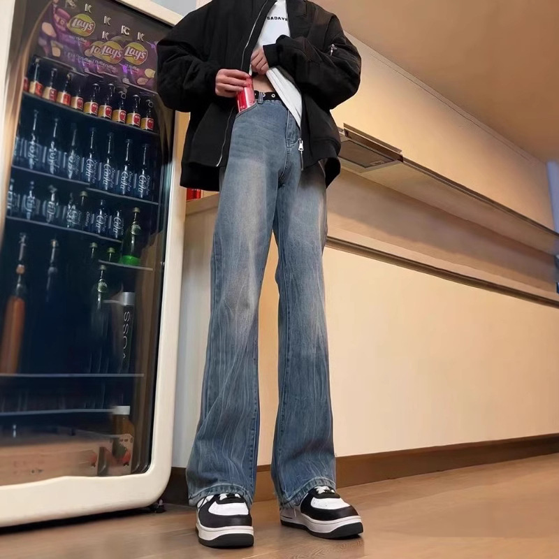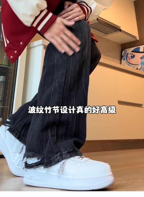 아메리칸 스타일 하이 스트리트 바이브 바지 대나무 패턴 청바지 남성 여름 새로운 키 큰 마이크로 스트레이트 바지스토어 가기