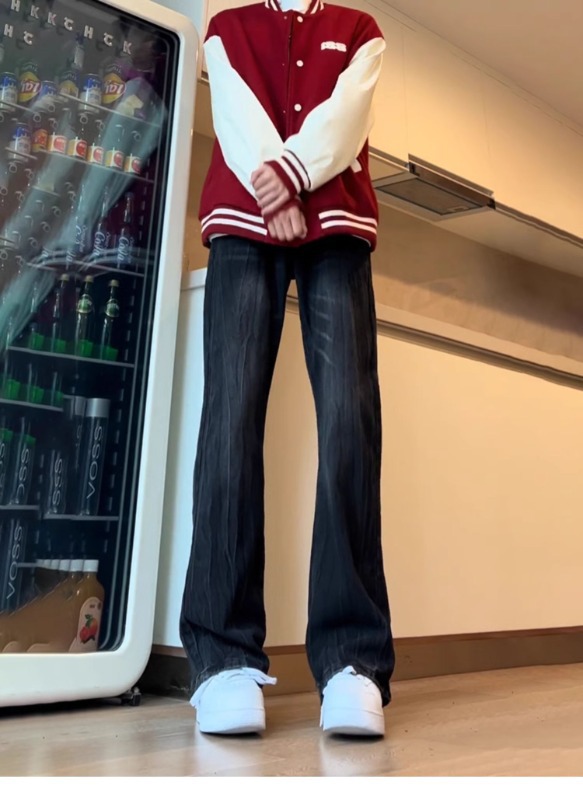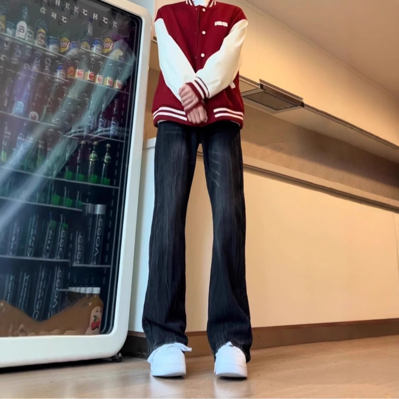 아메리칸 스타일 하이 스트리트 바이브 바지 대나무 패턴 청바지 남성 여름 새로운 키 큰 마이크로 스트레이트 바지