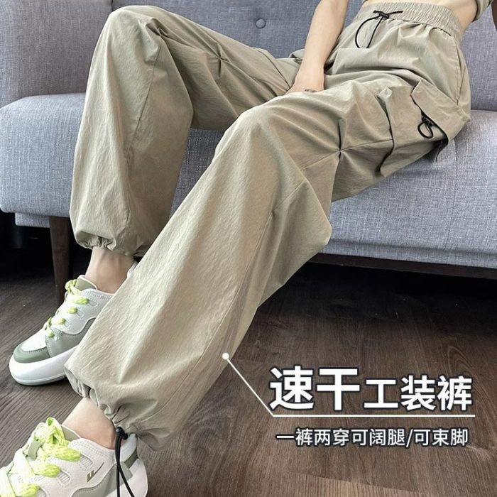 빠른 건조 작업복 여성의 2025 새로운 충전 작은 얼음 실크 넓은 다리 바지 봄과 여름 얇은 등산 바지