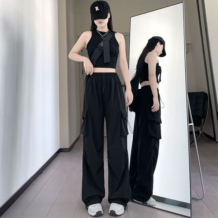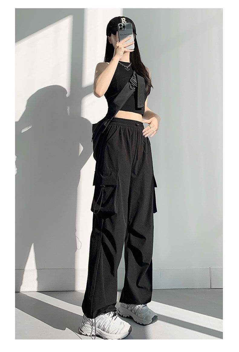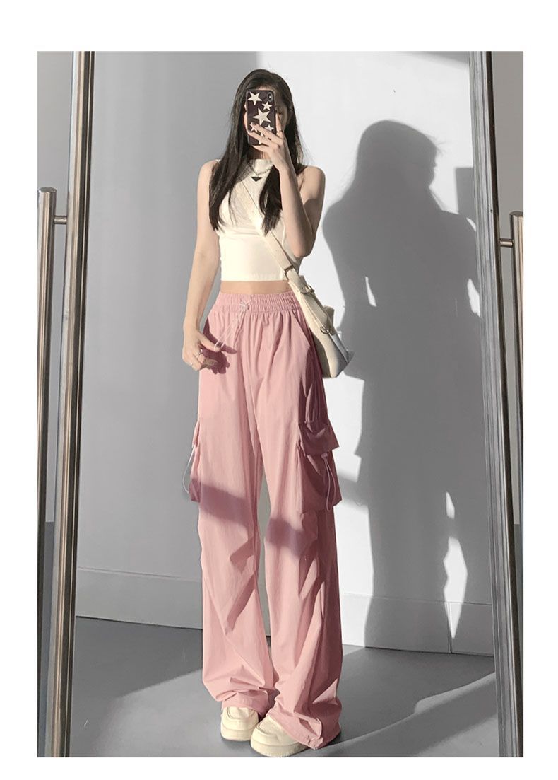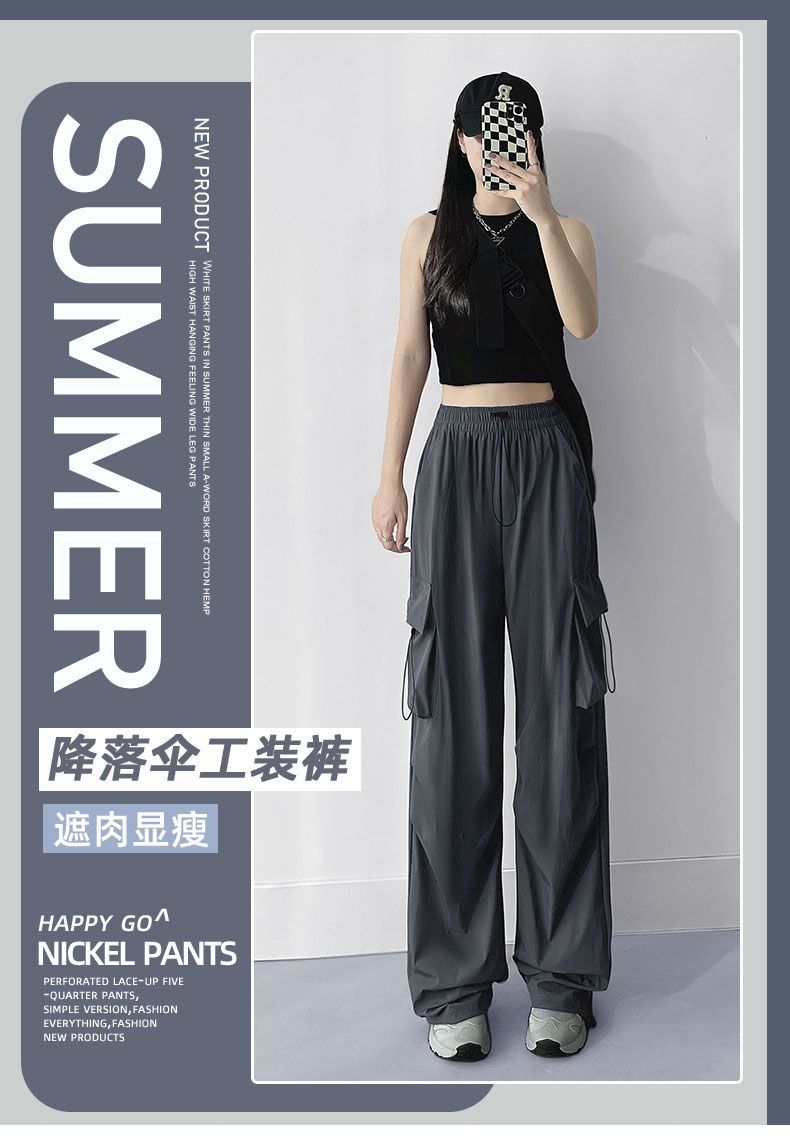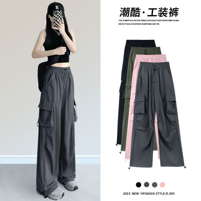 빠른 건조 작업복 여성의 2025 새로운 충전 작은 얼음 실크 넓은 다리 바지 봄과 여름 얇은 등산 바지스토어 가기