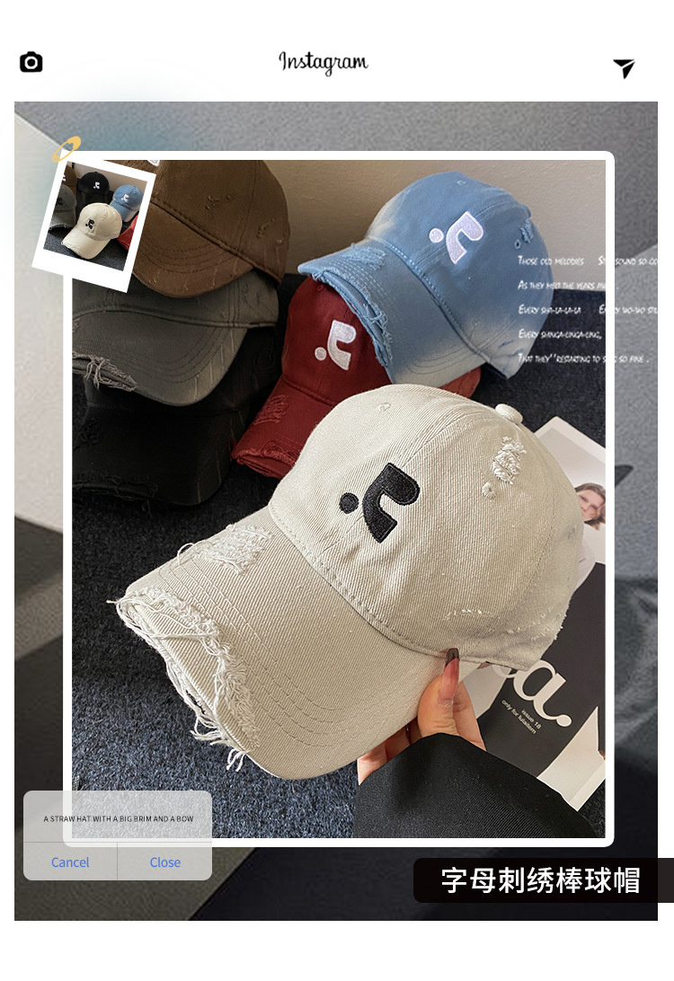 빈티지 디자인의 빈티지 스타일 야구 모자, 큰 머리둘레에도 잘 맞는 딥핏, 여성용 2025년 봄 자외선 차단 모자, 얼굴을 작아 보이게 해주는 디자인스토어 가기