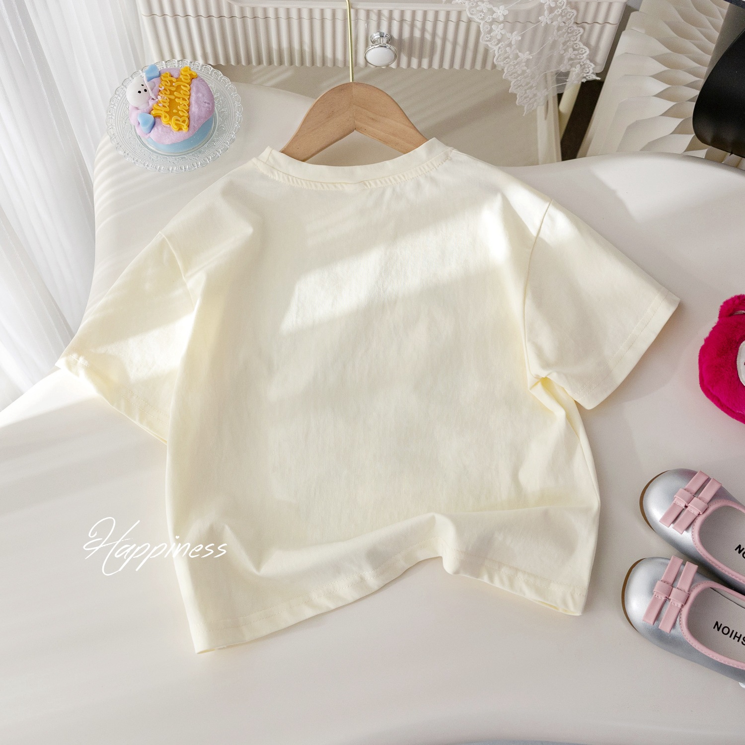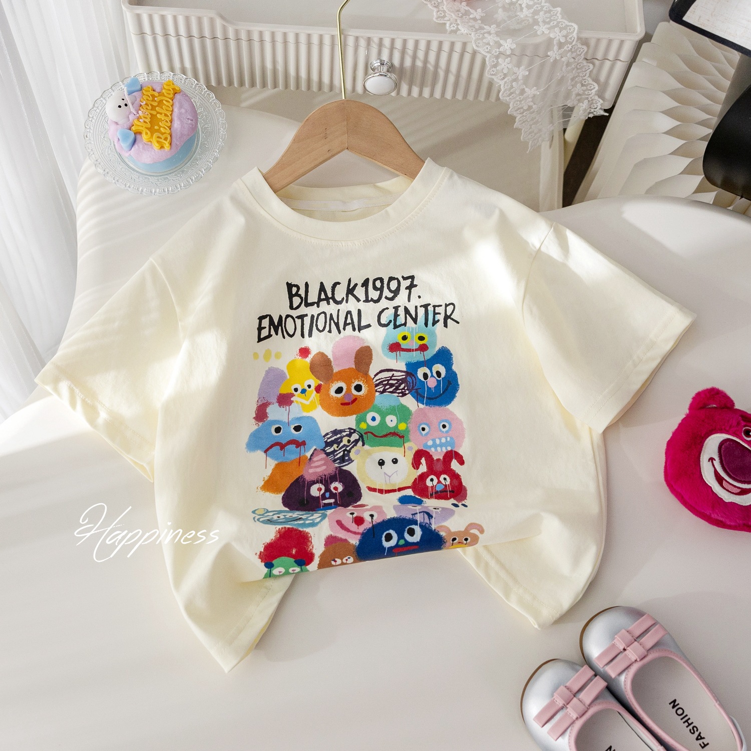 여자 한국어 버전 낙서 프린트 티셔츠 2024 여름 신작 어린이 인터넷 연예인 스타일 풀오버 반팔 옷