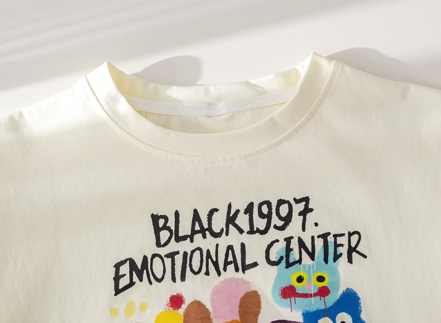 여자 한국어 버전 낙서 프린트 티셔츠 2024 여름 신작 어린이 인터넷 연예인 스타일 풀오버 반팔 옷스토어 가기