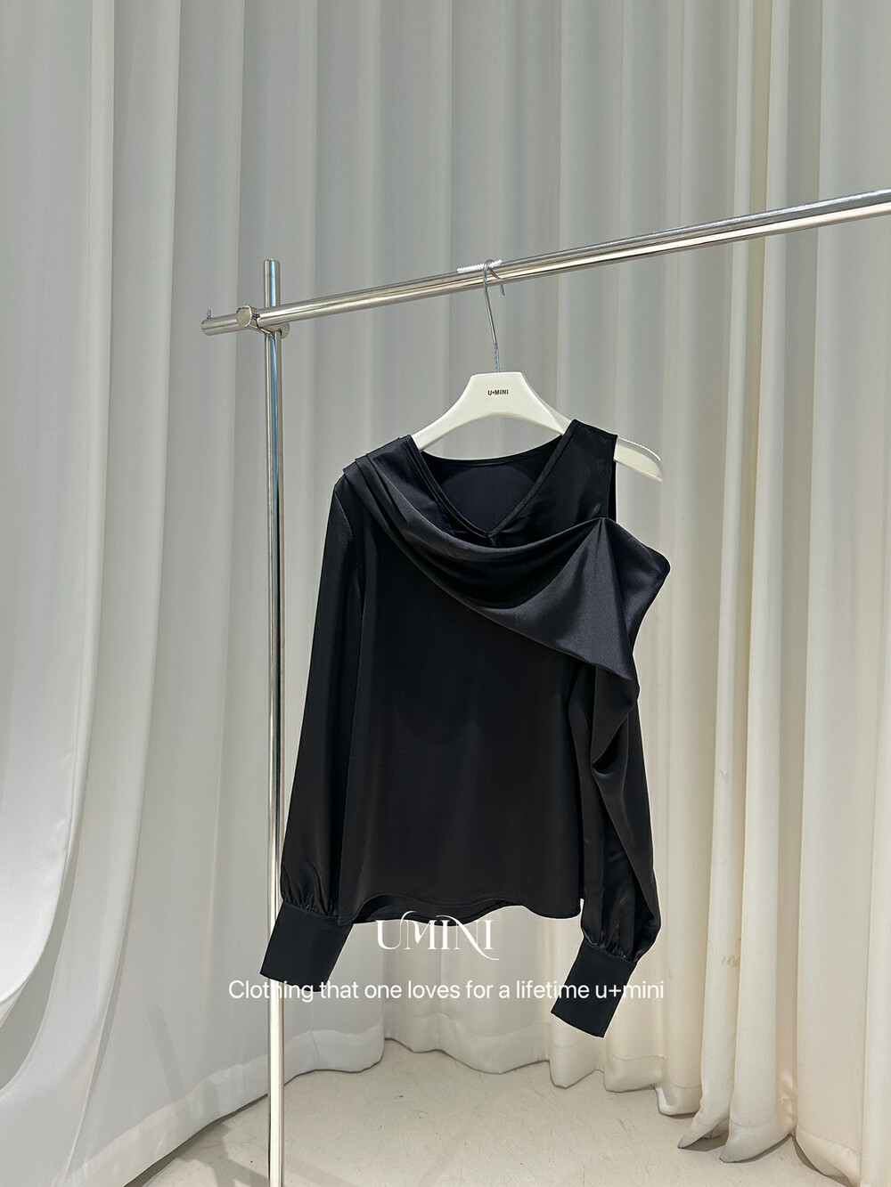 U 미니 13 라인 7039 새로운 봄 새로운 프랑스 스타일 실키 광택 어깨 소매 디자인 V-넥 셔츠 탑스토어 가기