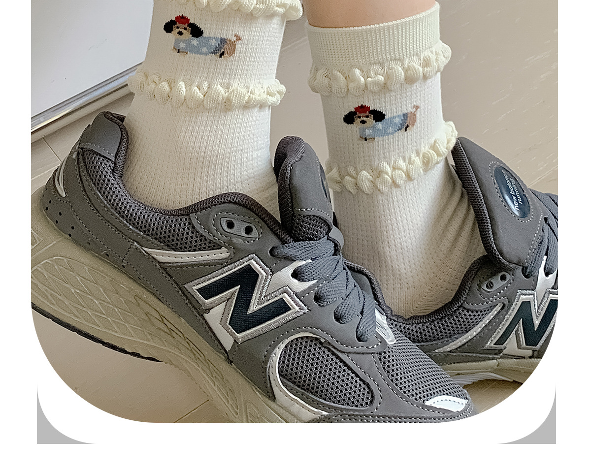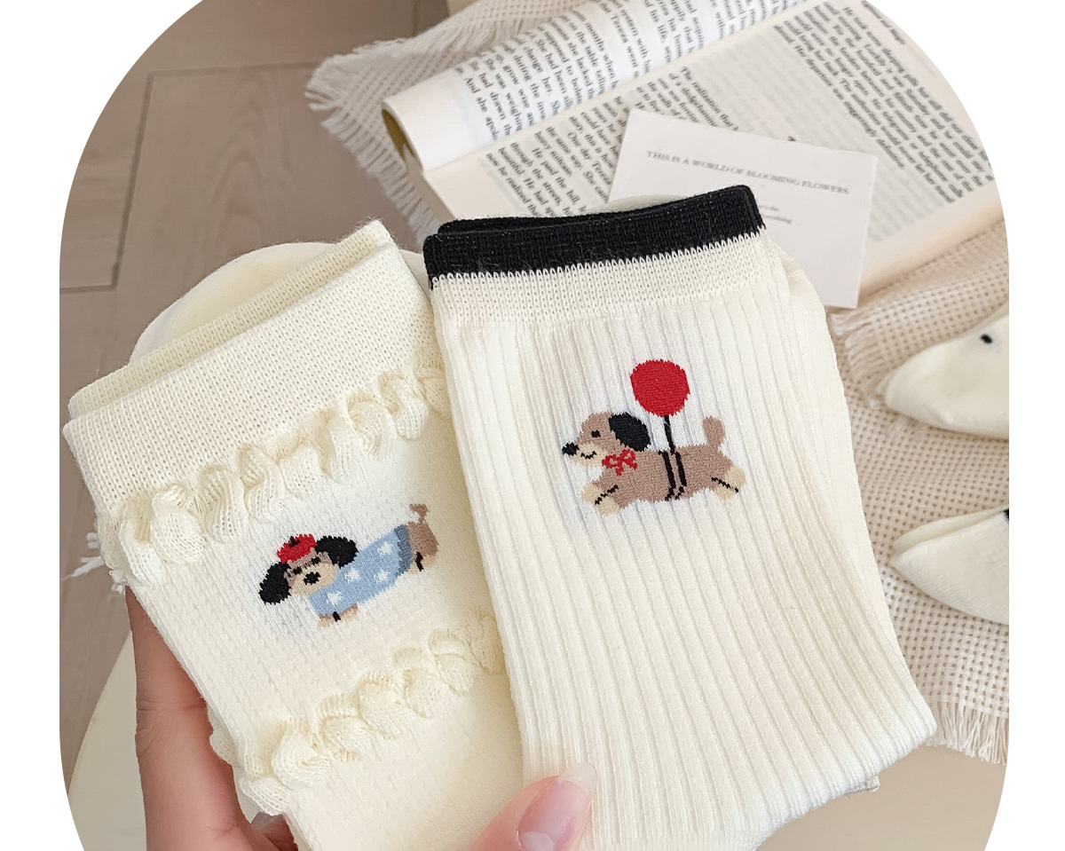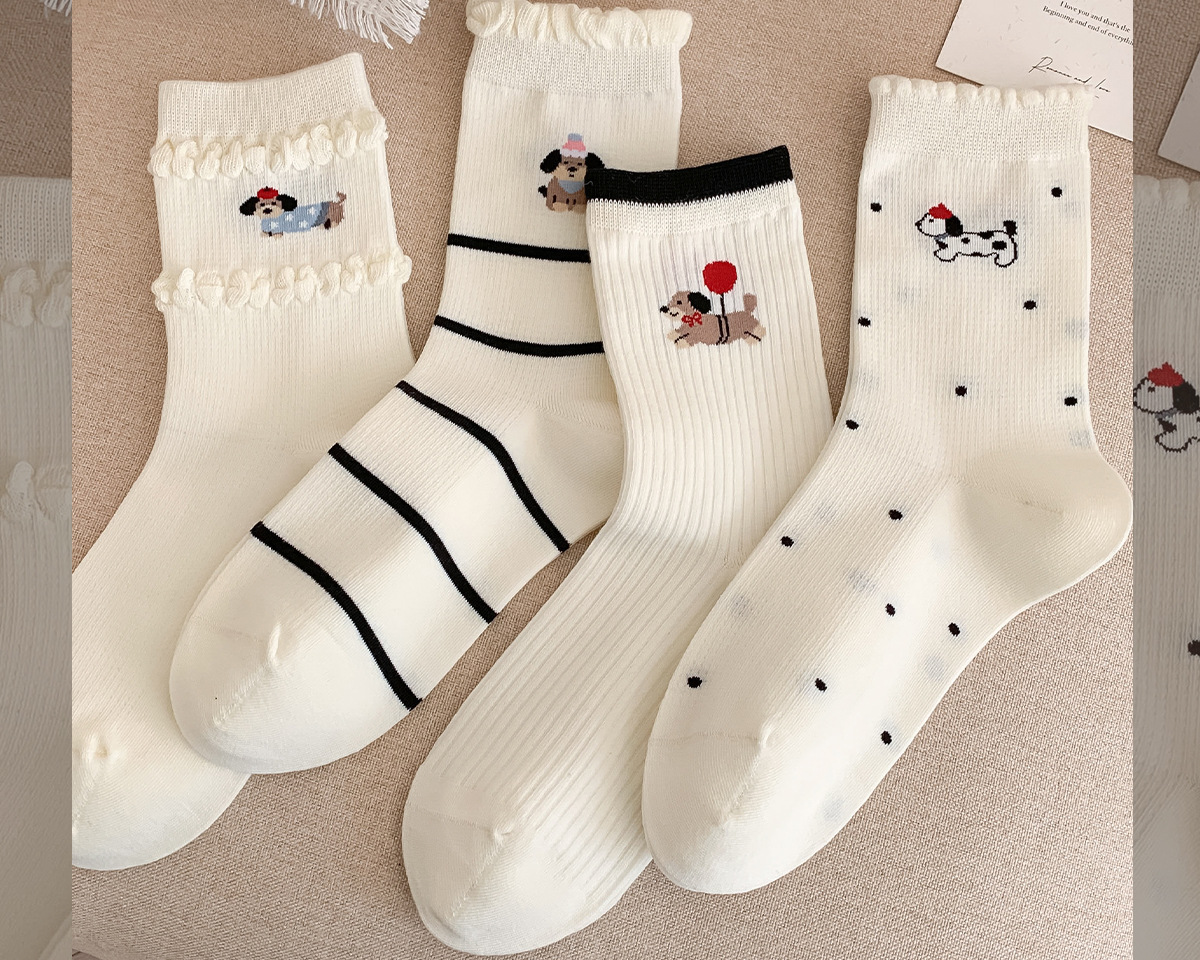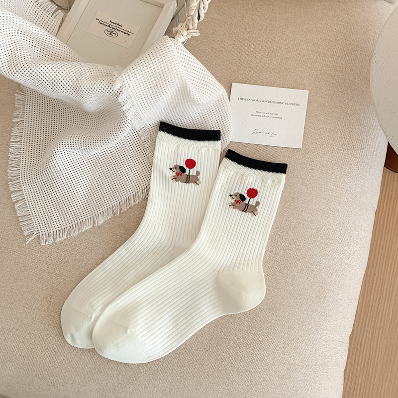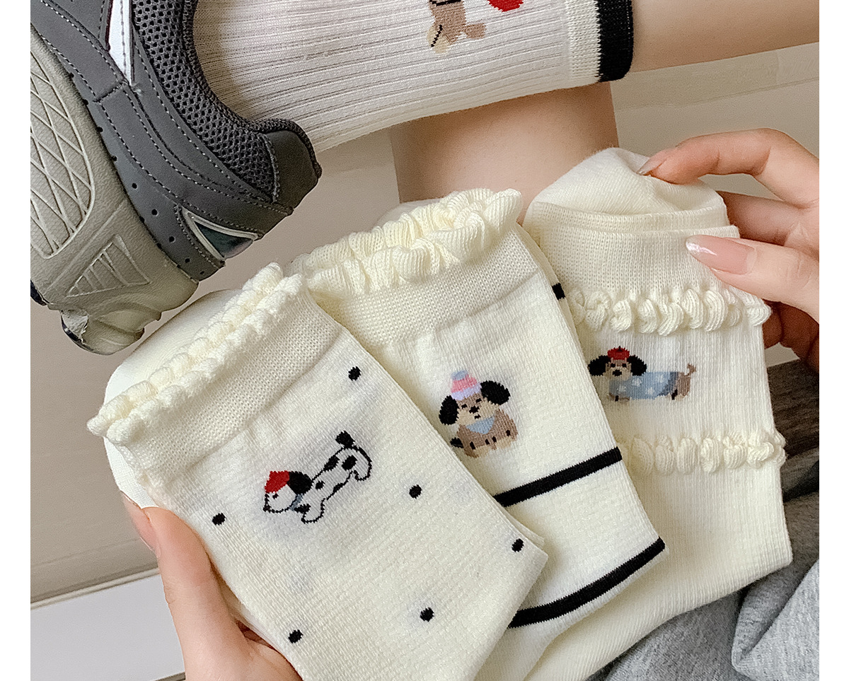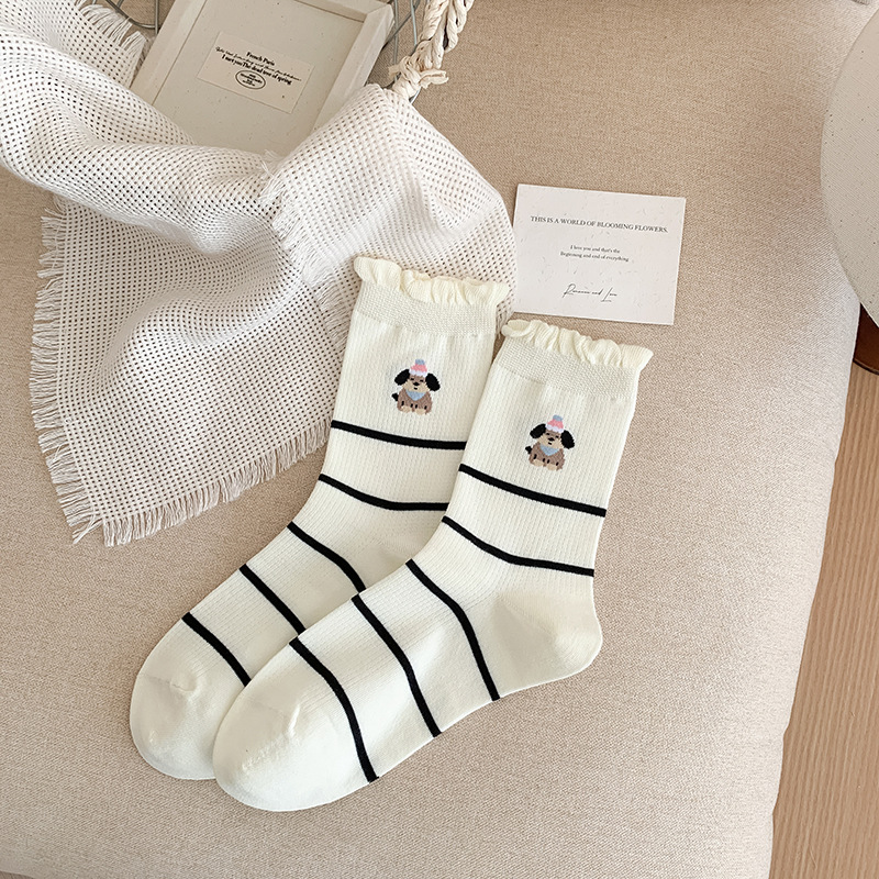 강아지 양말 여성의 봄과 가을 면화 양말 중간 양말 신종 통기성 코튼 양말 귀여운 레이스 버블 입 스택 양말