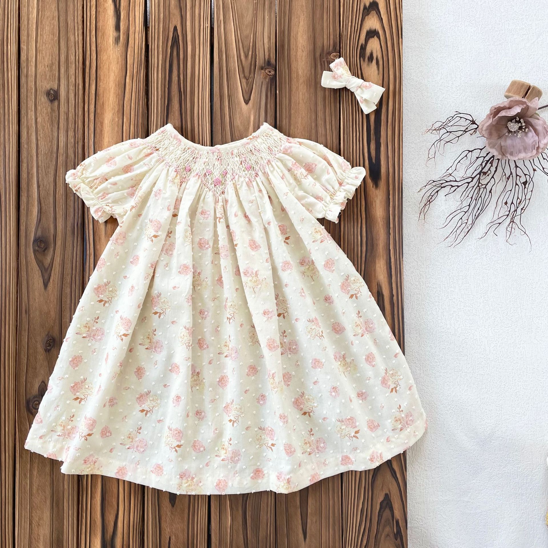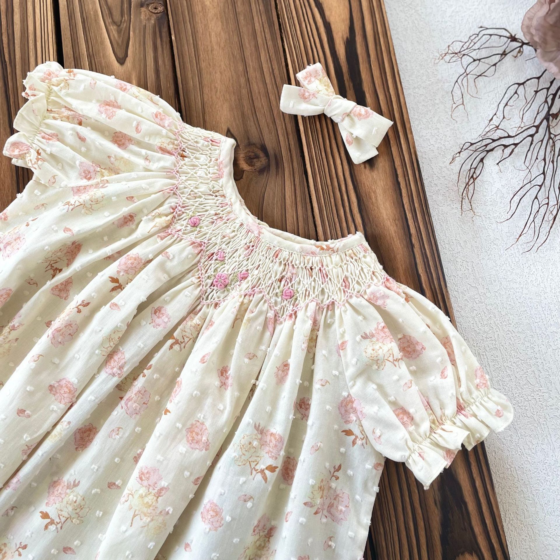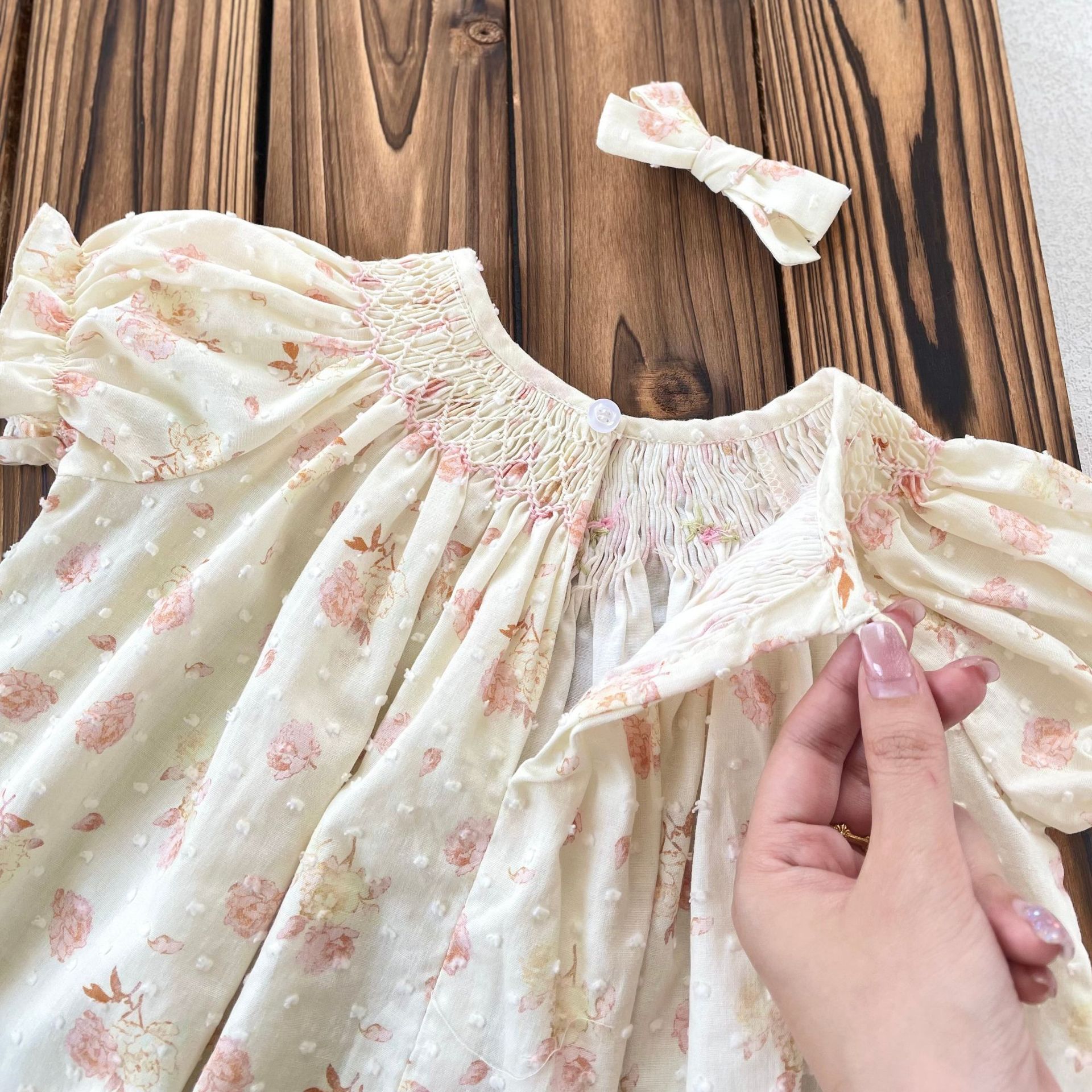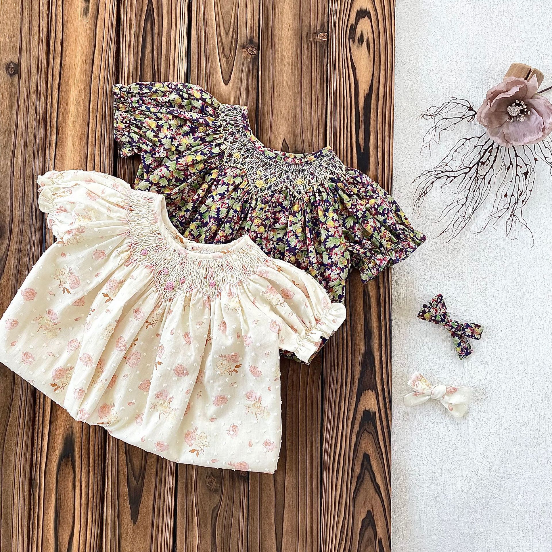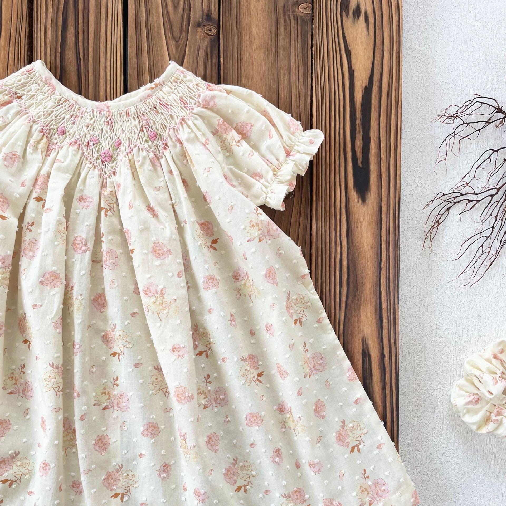 25 봄과 여름 소녀의 수제 자수 꽃 원피스 빈티지 아기 소녀의 반팔 공주 원피스