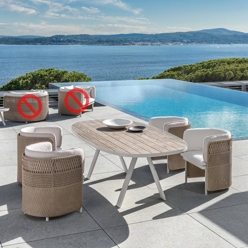 • 플라스틱 목재 타원형 긴 테이블