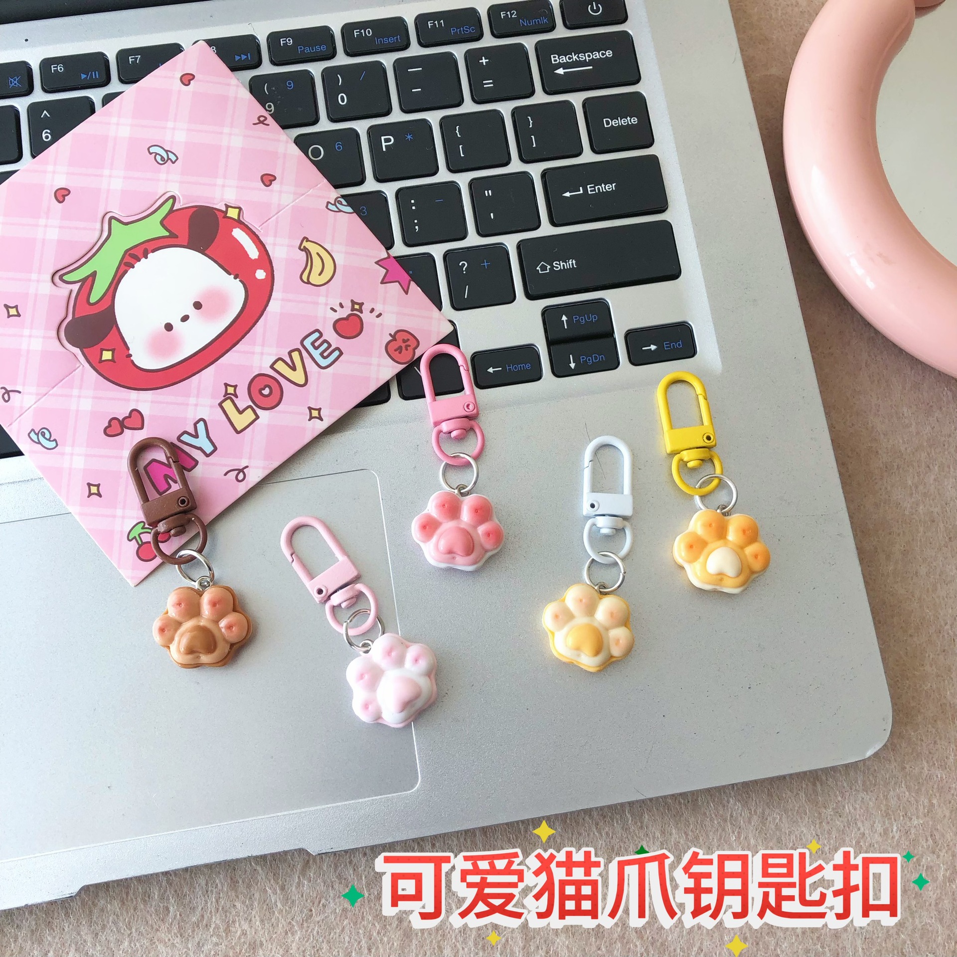 귀여운 다채로운 고양이의 발톱 키 체인 소녀 학생 흰색 버클 소녀 여학생 최고의 친구 선물 펜던트 만화 펜던트스토어 가기