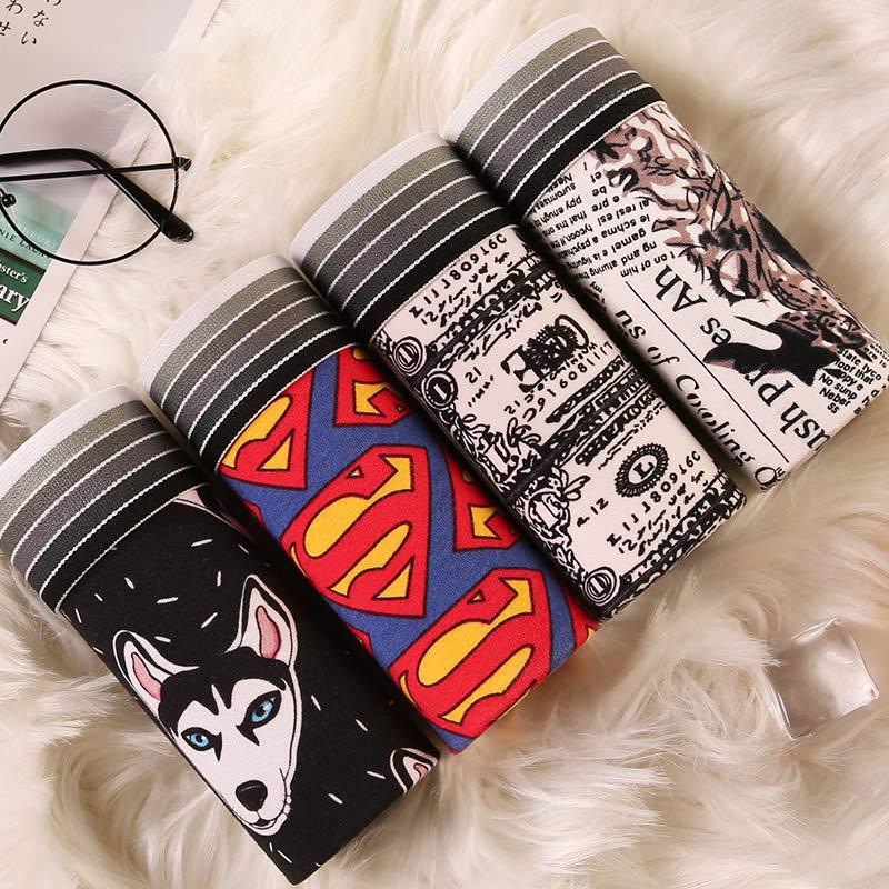 남자 속옷 만화 유행 남자 복서 귀여운 플러스 사이즈 통기성 십대 속옷 머리 학생의 4 코너 짧은 바지