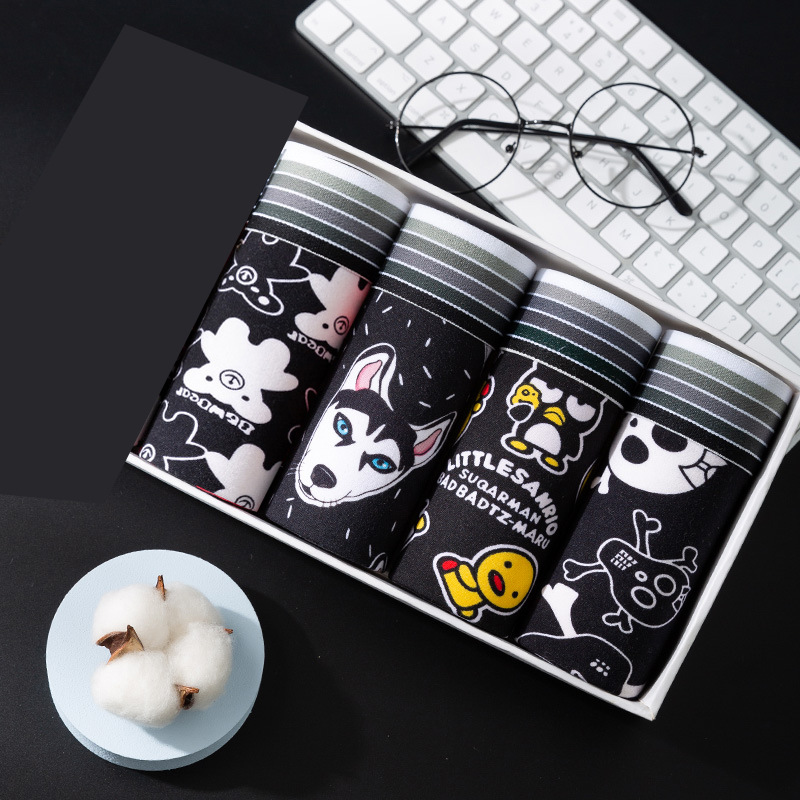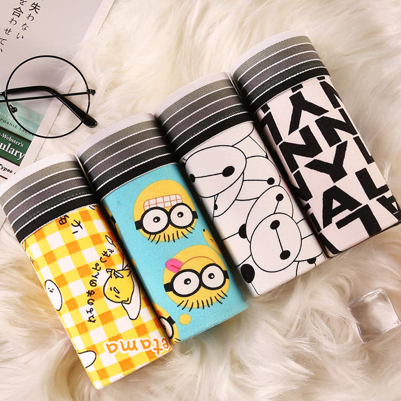 남자 속옷 만화 유행 남자 복서 귀여운 플러스 사이즈 통기성 십대 속옷 머리 학생의 4 코너 짧은 바지스토어 가기