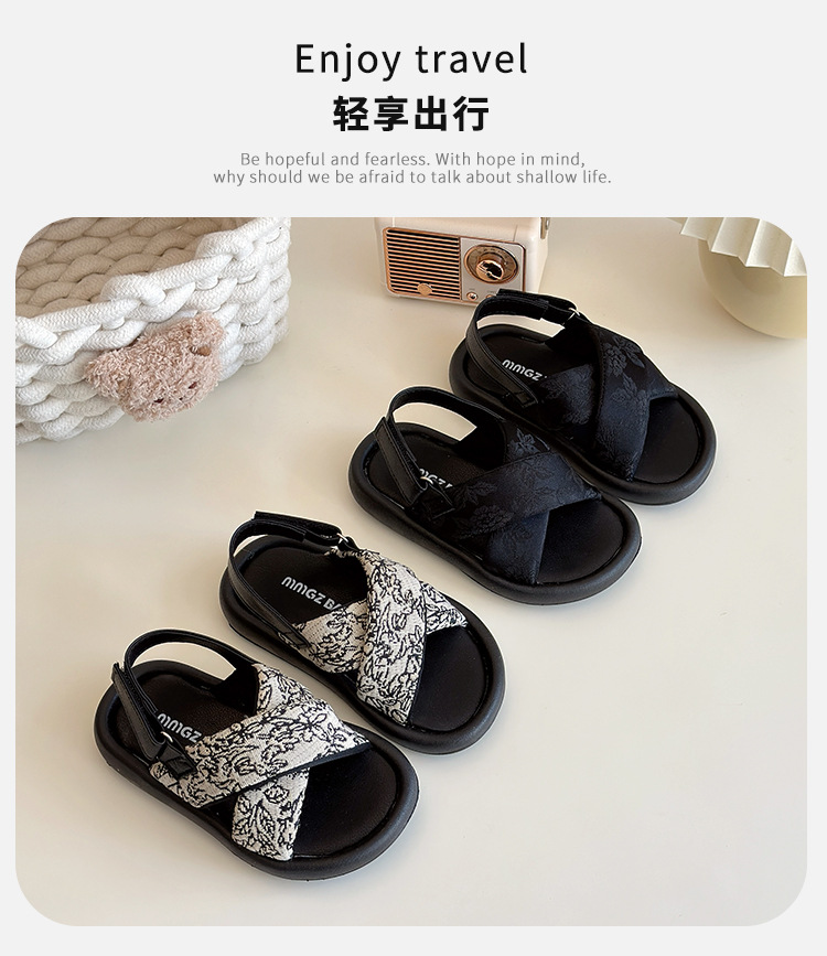 소녀 Peep Toe Velcro 샌들 2025 여름 새로운 어린이 캐주얼 소프트 하단 비치 신발 어린이 신발스토어 가기