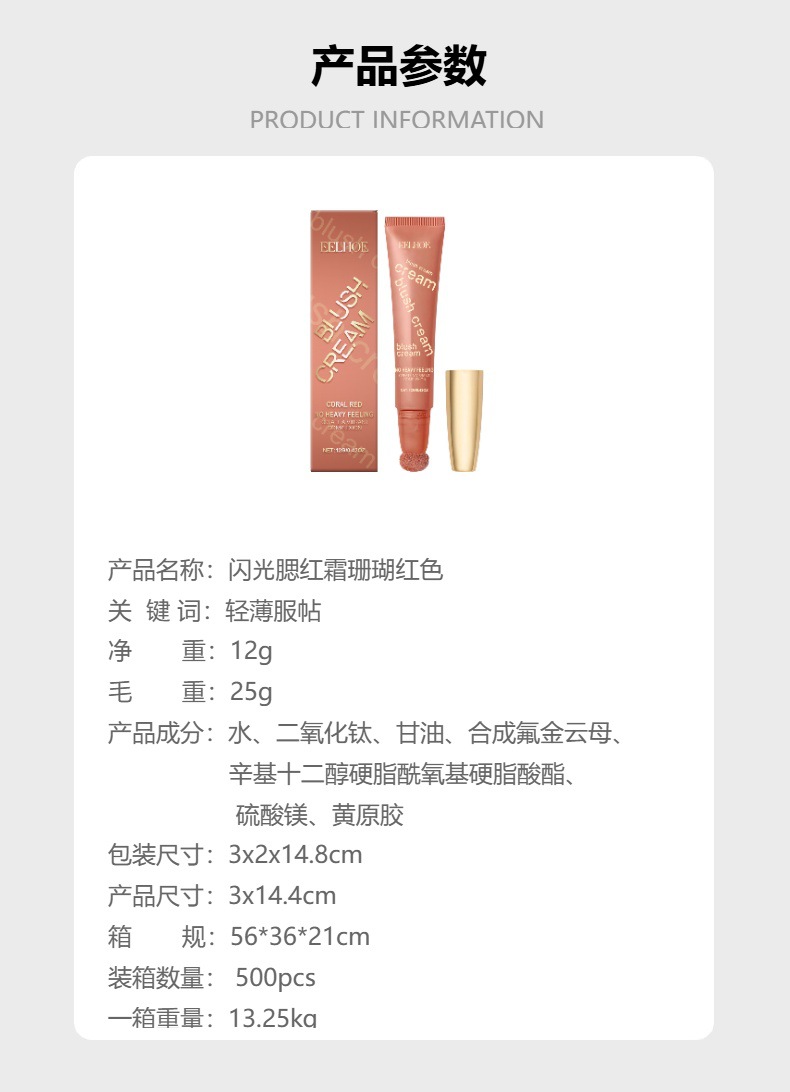 EELHOE 플래시 블러쉬 크림 산호 레드 라이트 천연 세트 광택 컬러 광택 블러쉬 크림스토어 가기