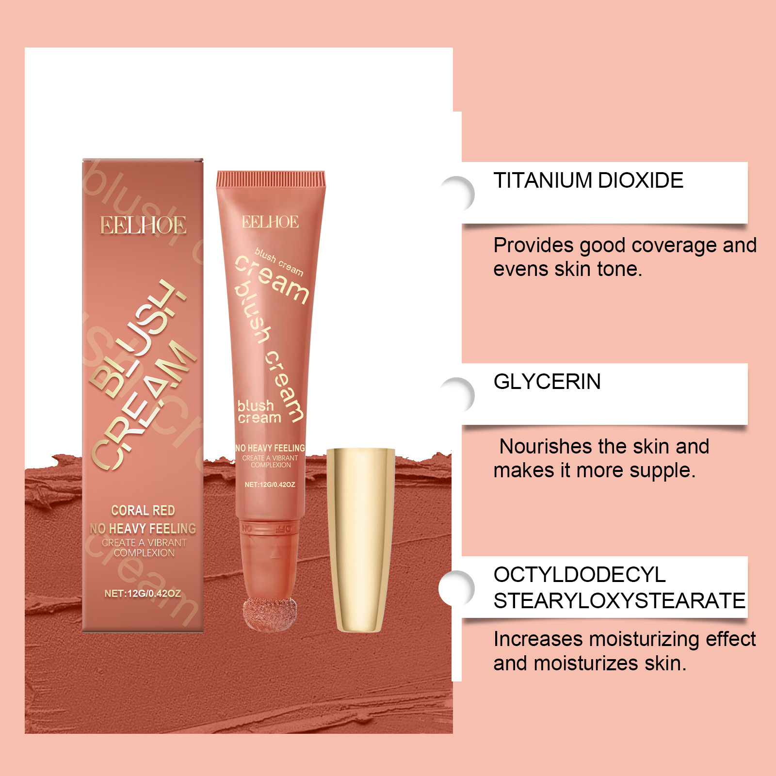 EELHOE 플래시 블러쉬 크림 산호 레드 라이트 천연 세트 광택 컬러 광택 블러쉬 크림