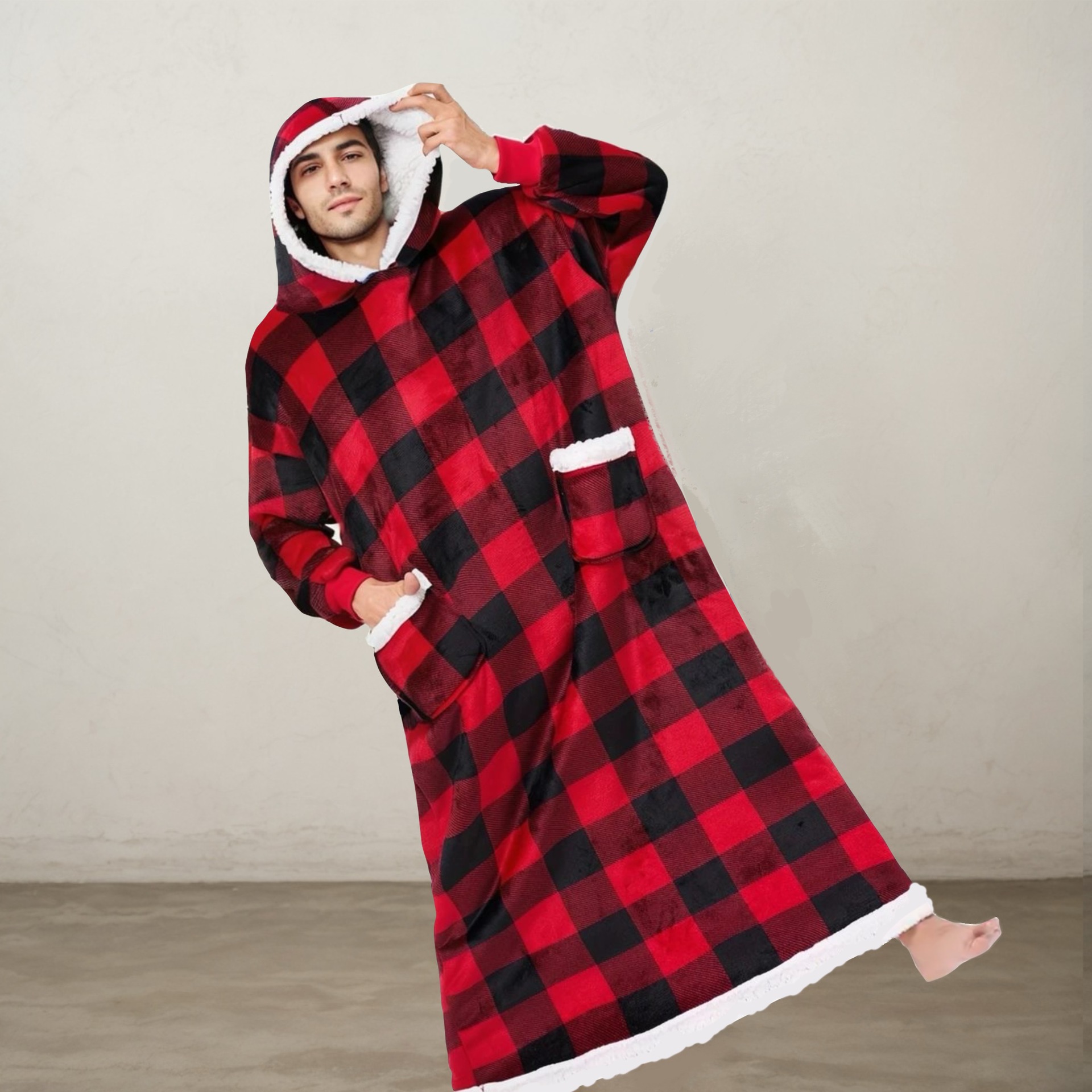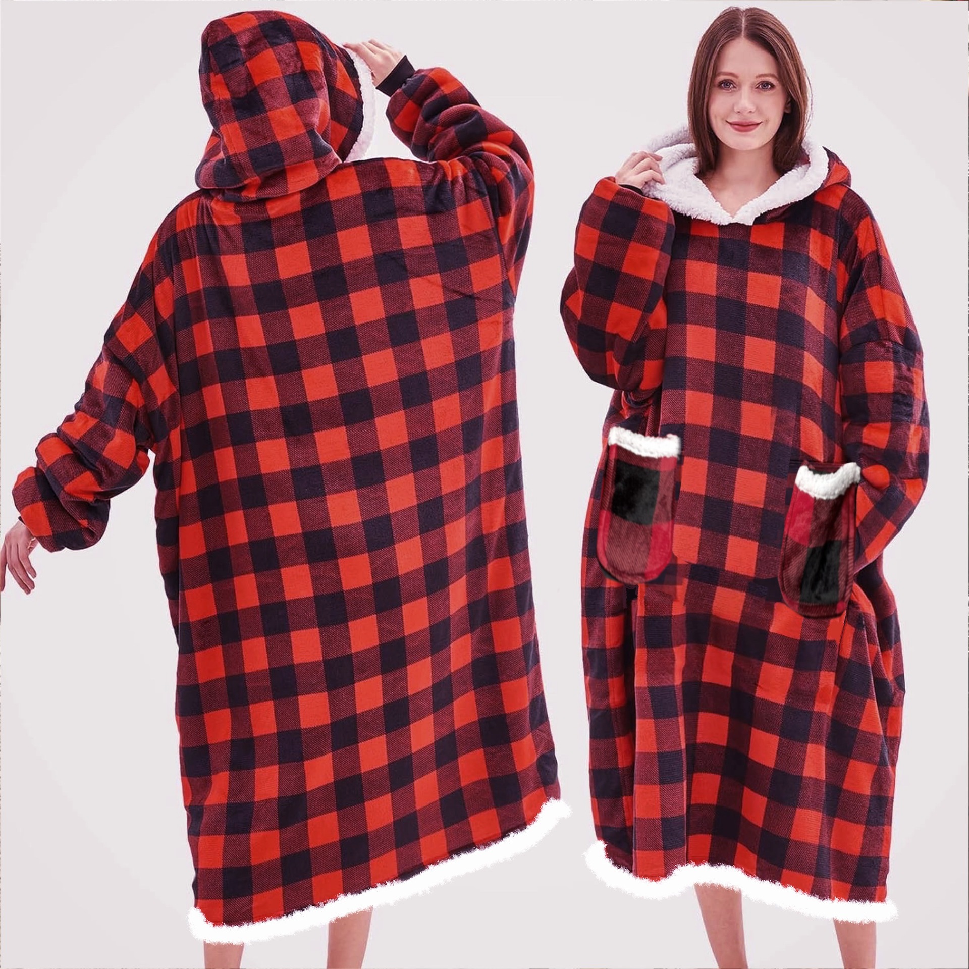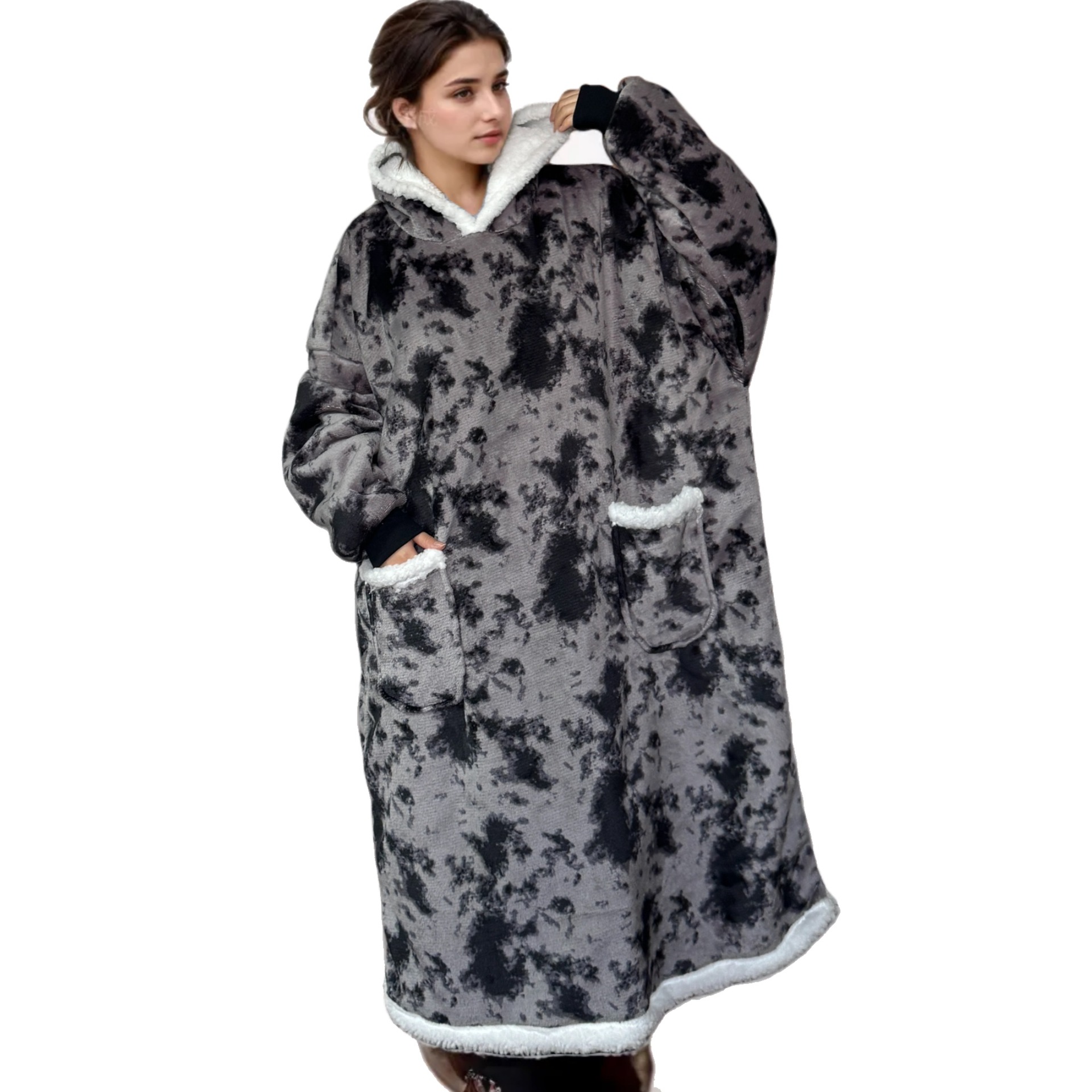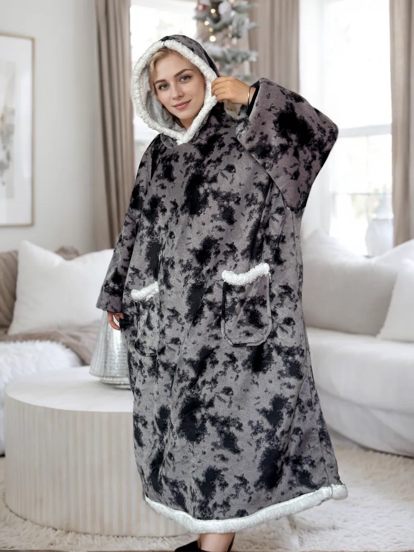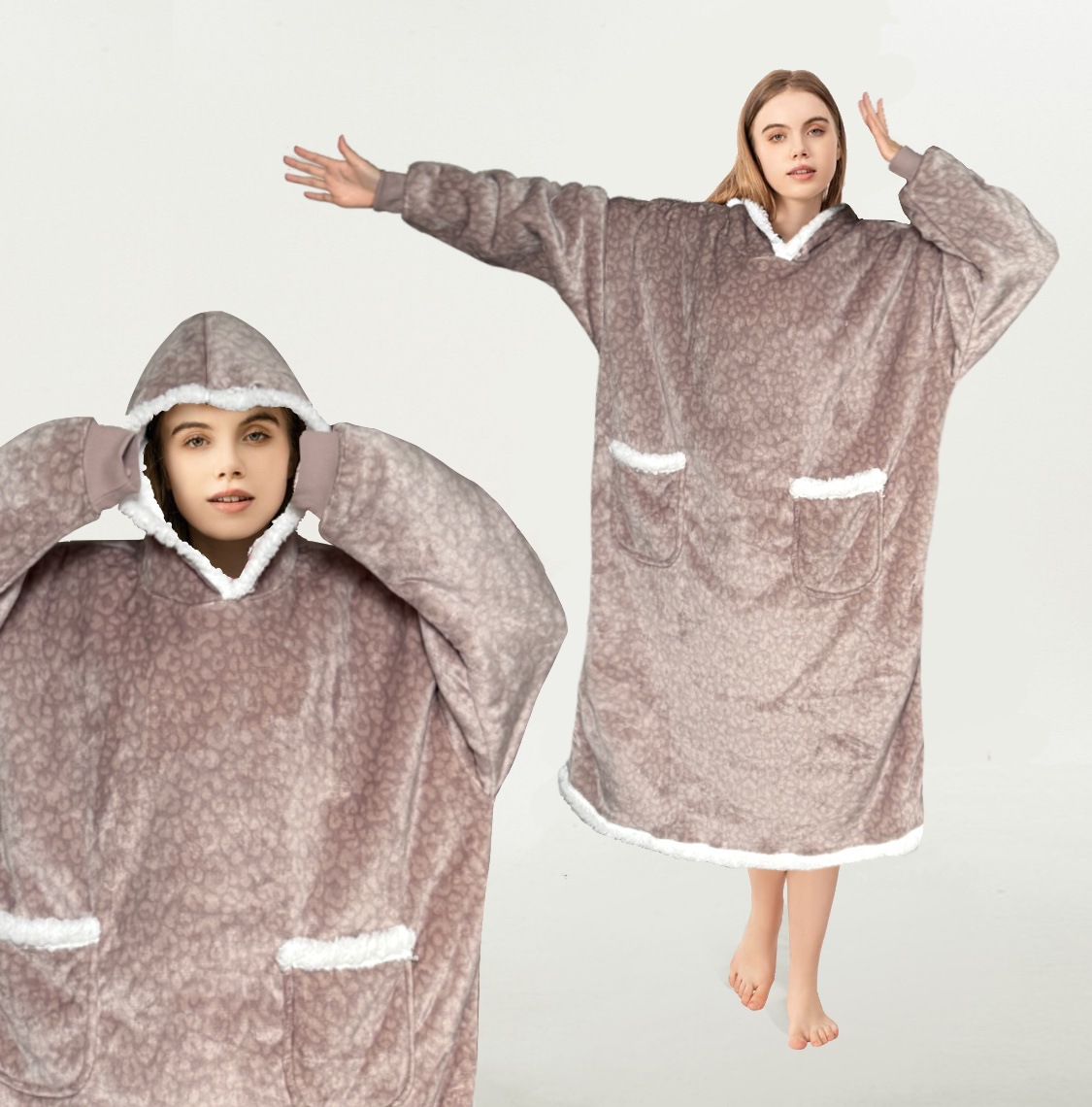 후드티 잠옷 겨울용 레오파드 프린트 사이드 포켓 담요 플란넬 양털 담요로도 활용 가능 홈웨어 크리스마스 잠옷스토어 가기