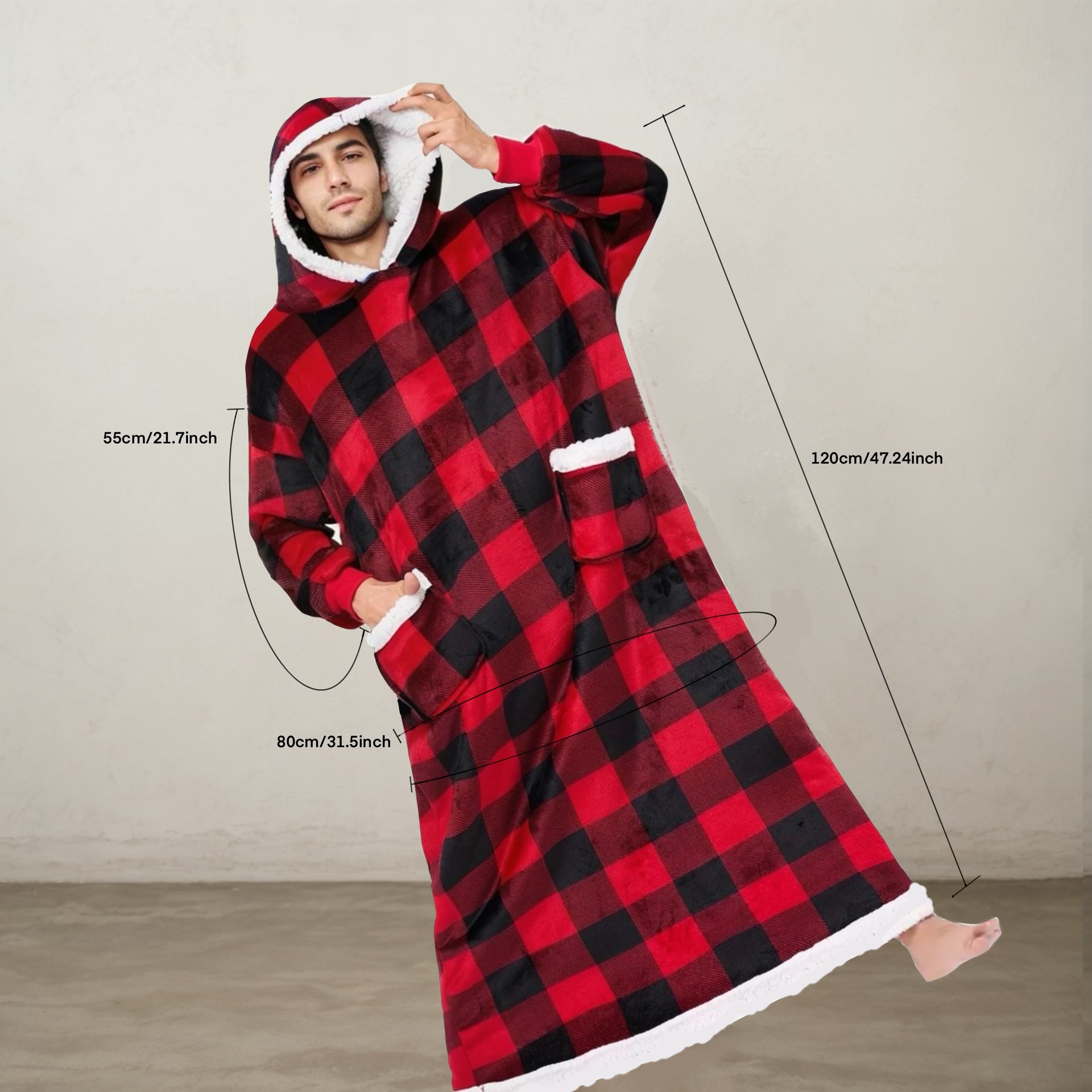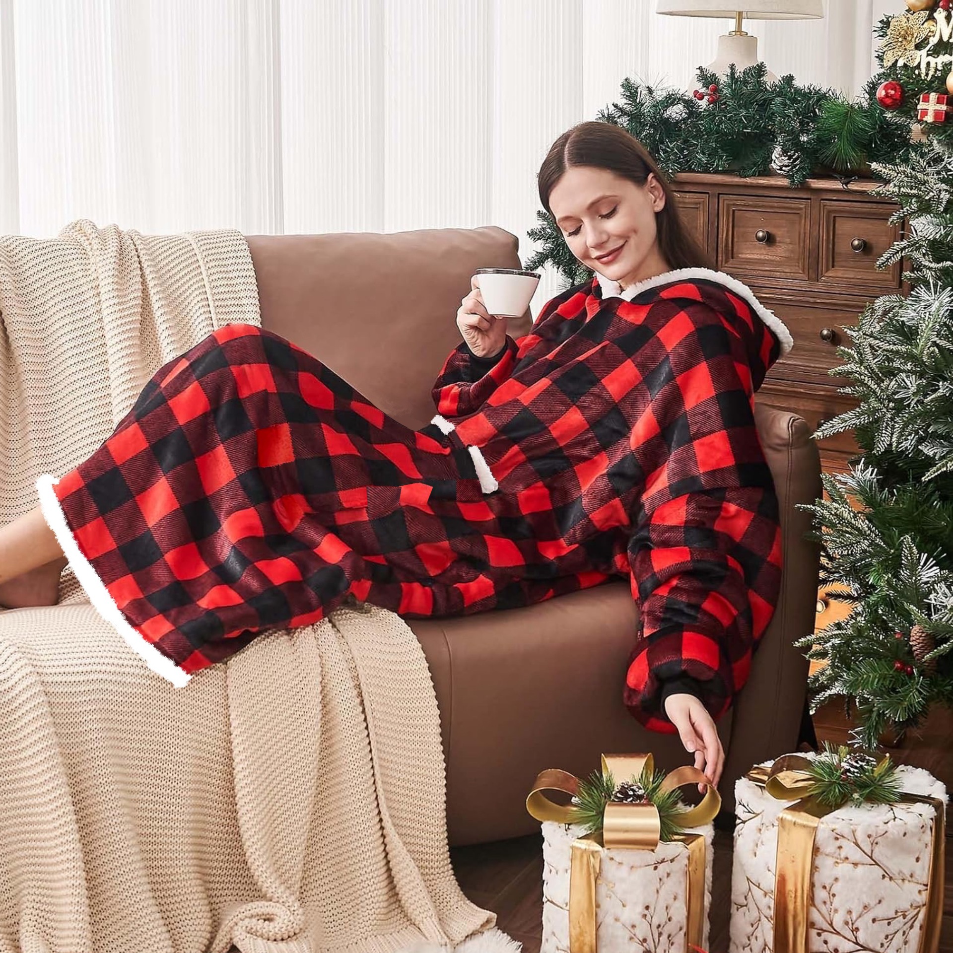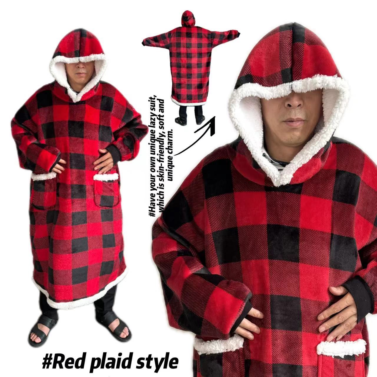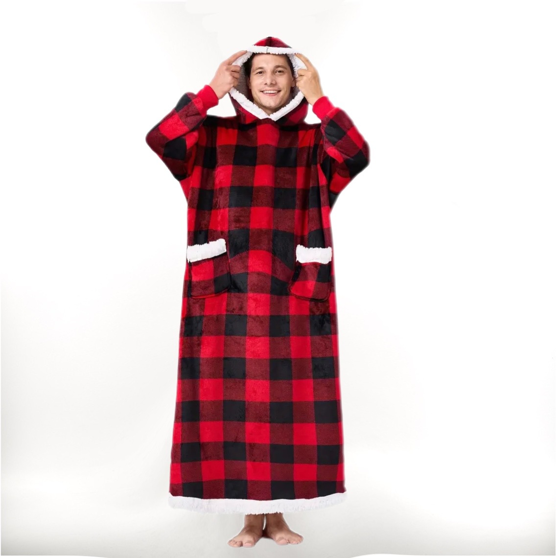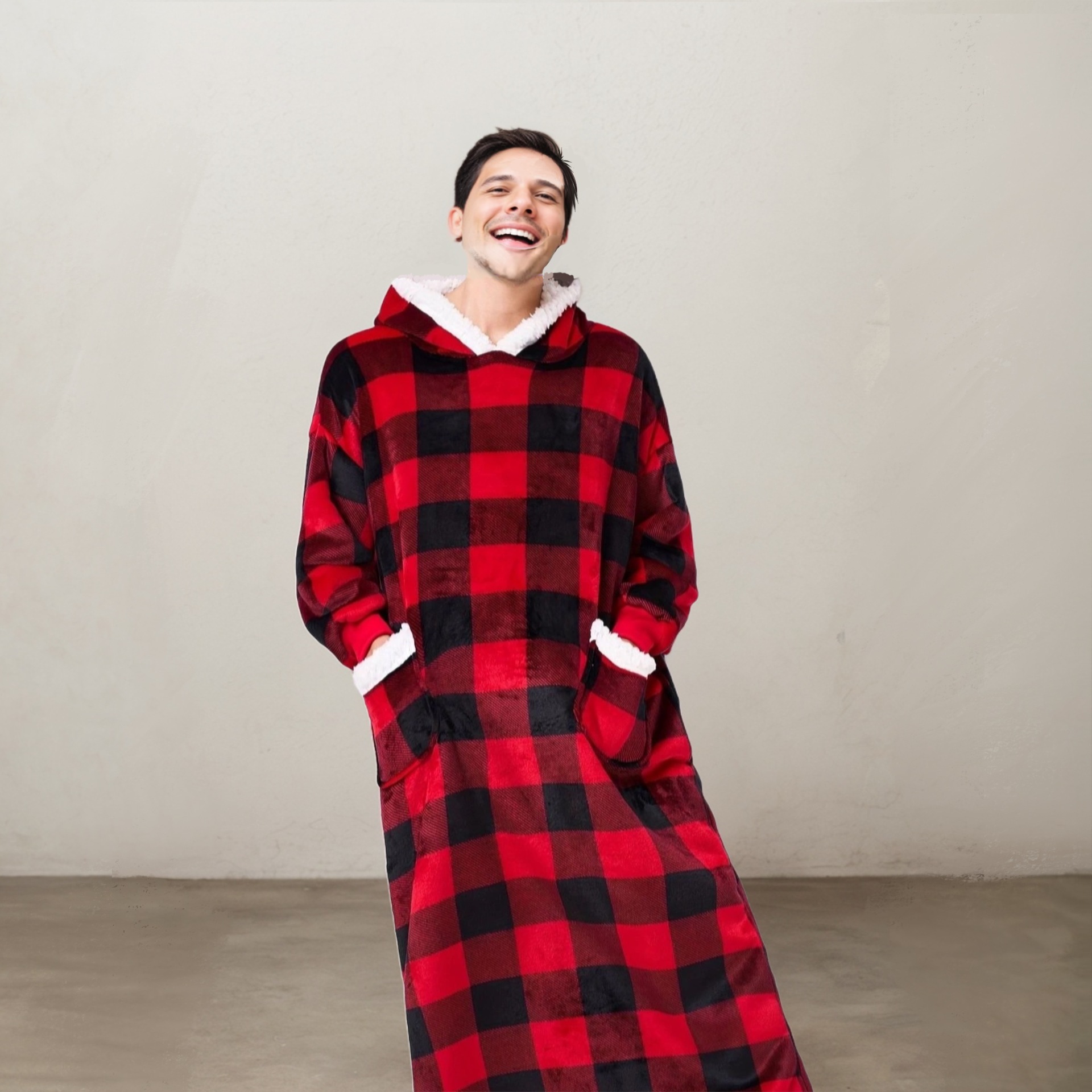 후드티 잠옷 겨울용 레오파드 프린트 사이드 포켓 담요 플란넬 양털 담요로도 활용 가능 홈웨어 크리스마스 잠옷스토어 가기