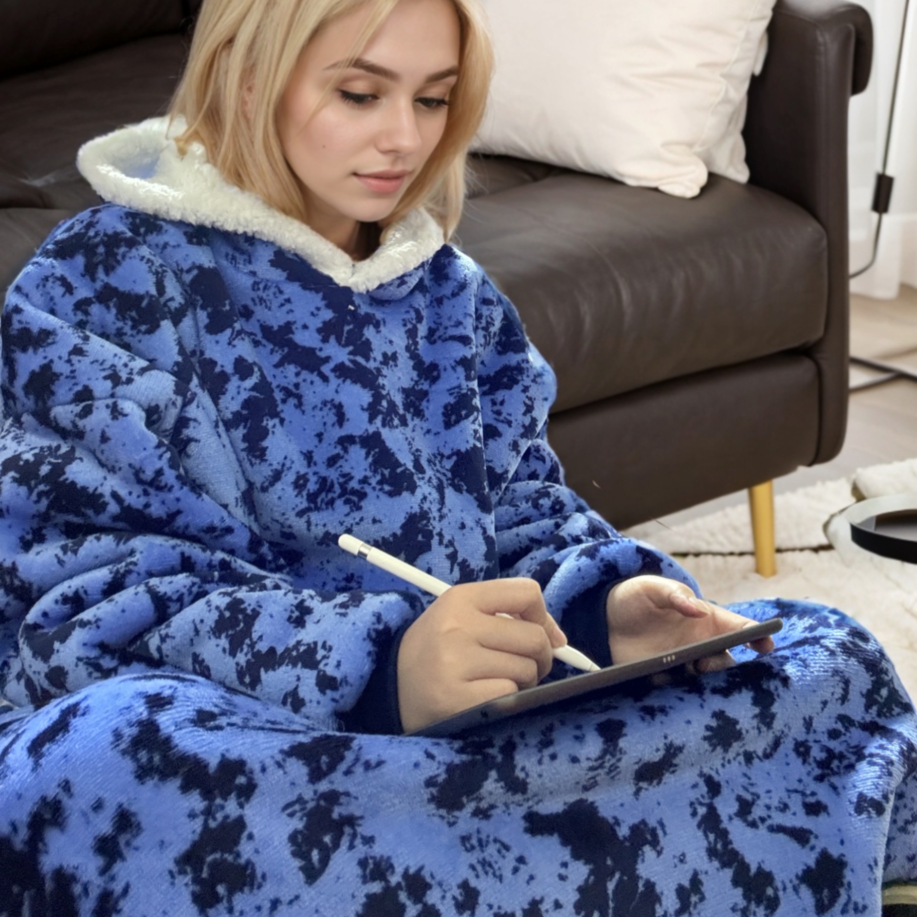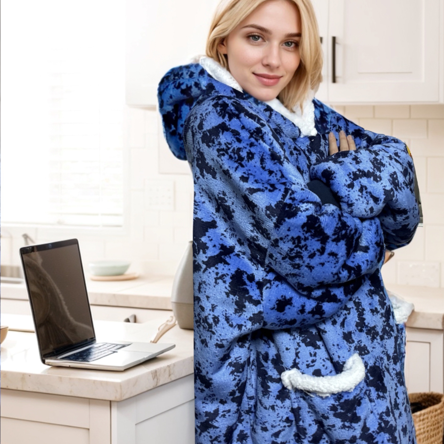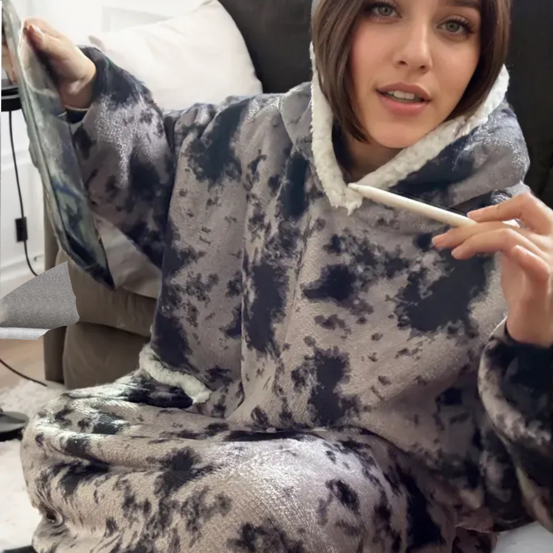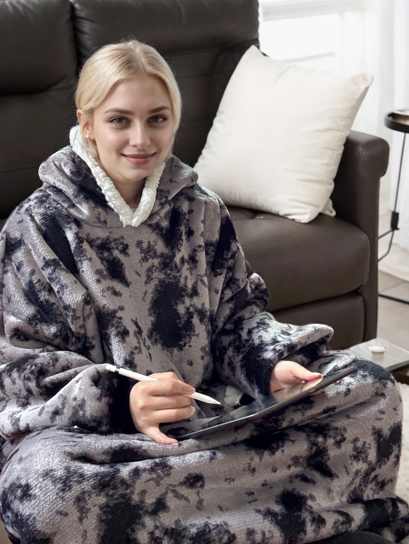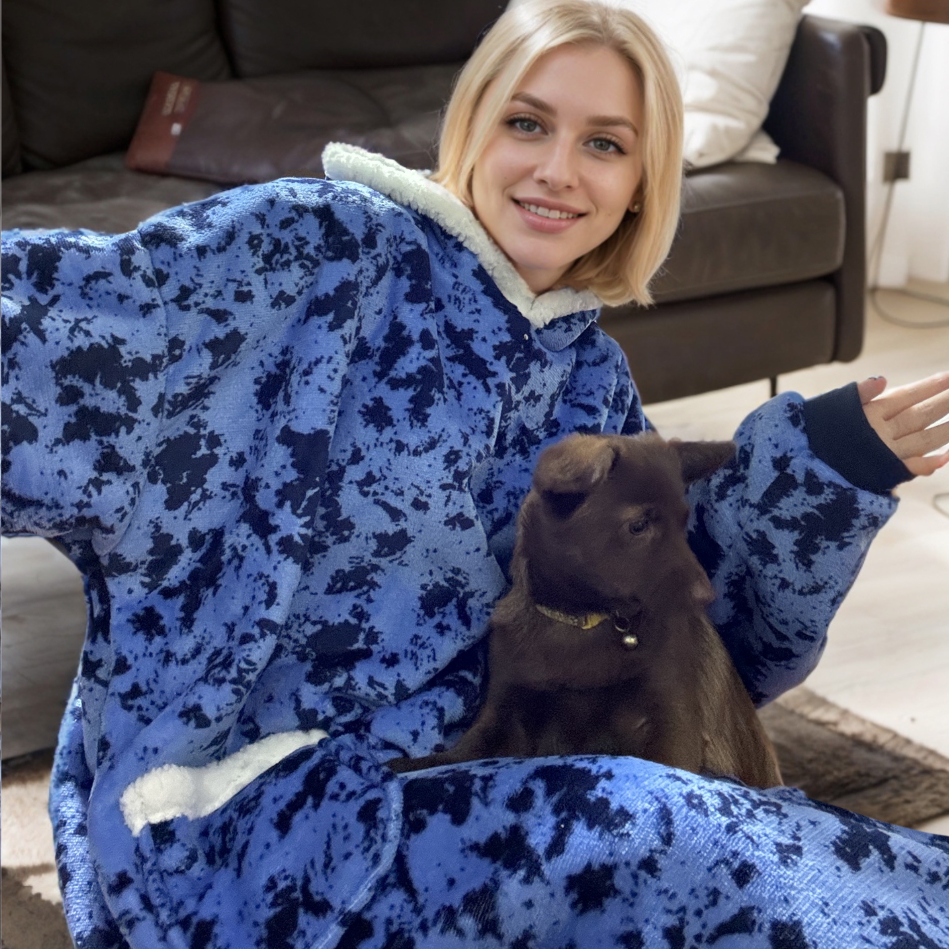 후드티 잠옷 겨울용 레오파드 프린트 사이드 포켓 담요 플란넬 양털 담요로도 활용 가능 홈웨어 크리스마스 잠옷스토어 가기