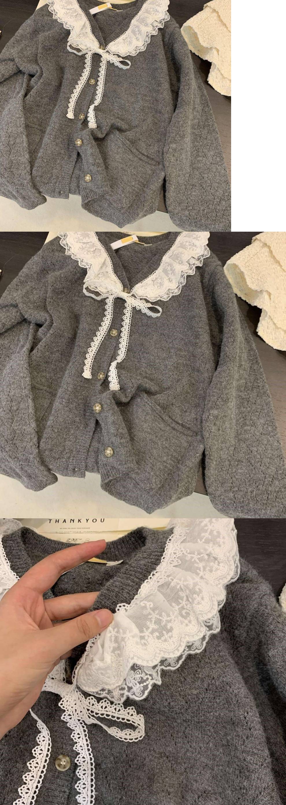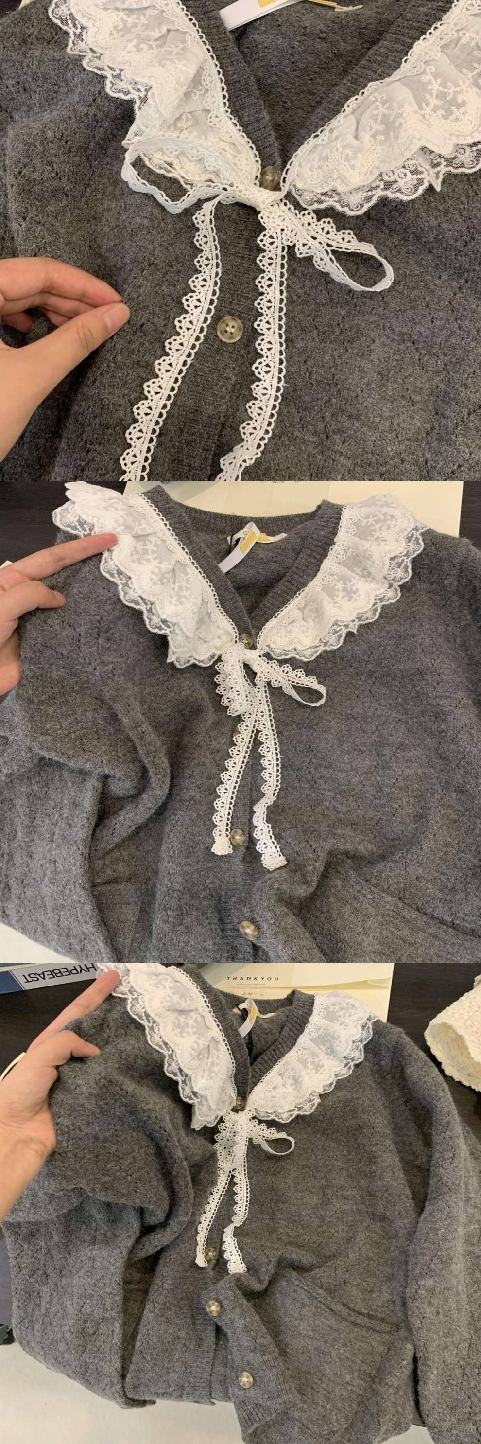 인형 칼라 스웨터 여성의 봄 게으른 귀여운 달콤한 레이스 칼라 니트 카디건 재킷 일본 스타일 젠틀 탑스토어 가기