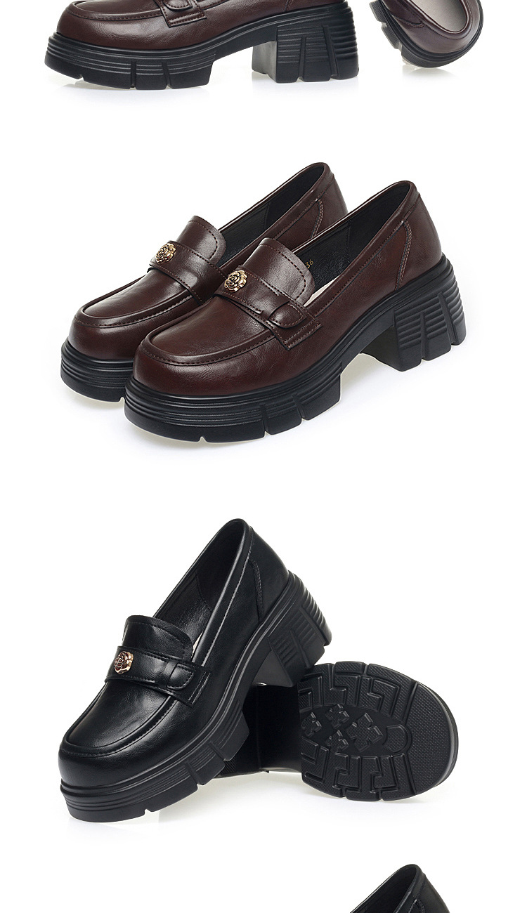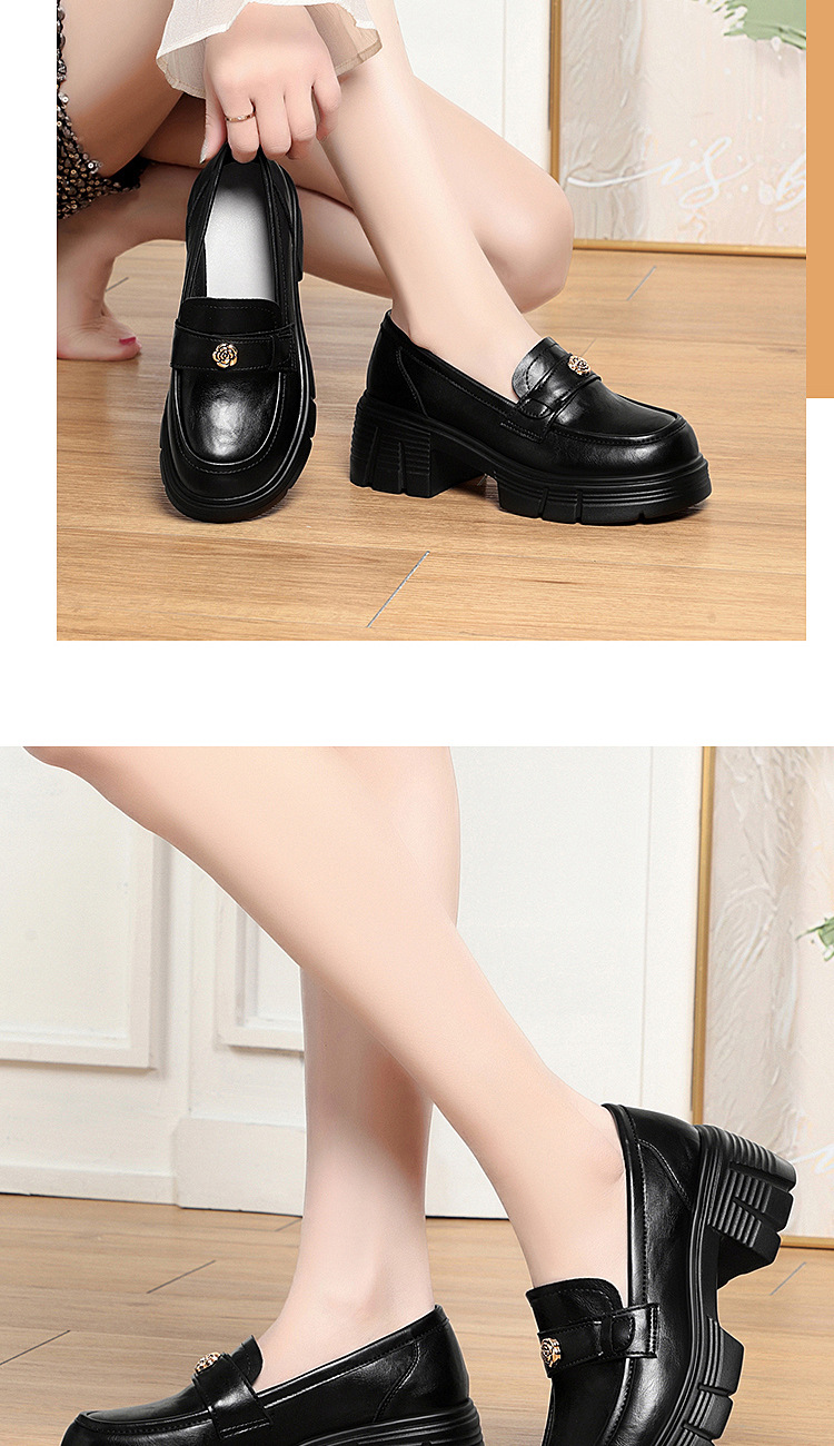 작은 가죽 신발 한 세대 봄과 가을 새로운 여성 신발 두꺼운 밑창 어머니 신발 하이힐 로퍼 영국 신발 페달