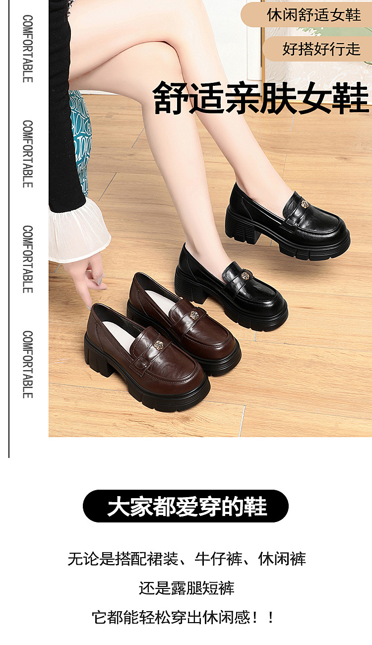 작은 가죽 신발 한 세대 봄과 가을 새로운 여성 신발 두꺼운 밑창 어머니 신발 하이힐 로퍼 영국 신발 페달스토어 가기
