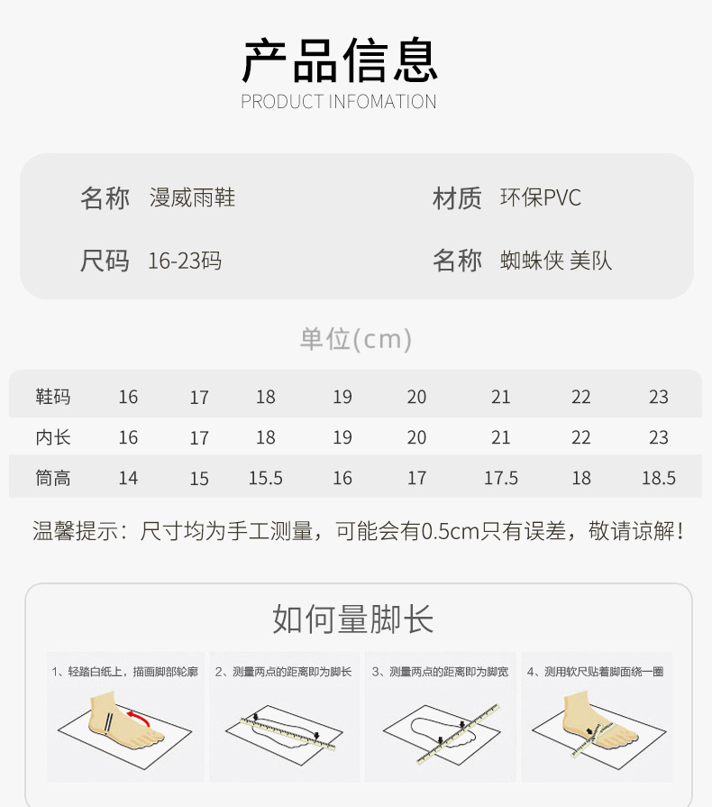어린이 레인부츠 남아 여아 아동 유아 학생 미끄럼 방지 스파이더맨 레인부츠 워터슈즈【소매 한정】스토어 가기