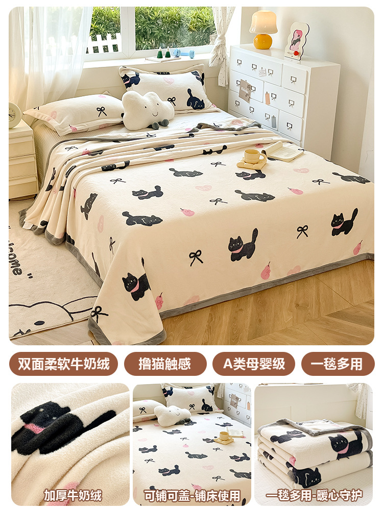 • ⭐핑크색과 검정색 고양이 [양면 밀크벨벳, 정전기 방지, 털빠짐 방지]