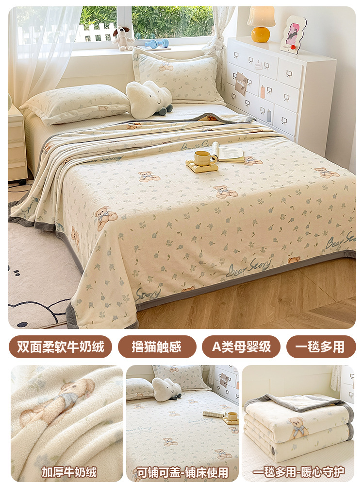 • ⭐플로럴베어 [양면밀크벨벳, 정전기방지, 쉽게 빠지지 않음]