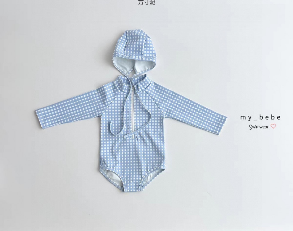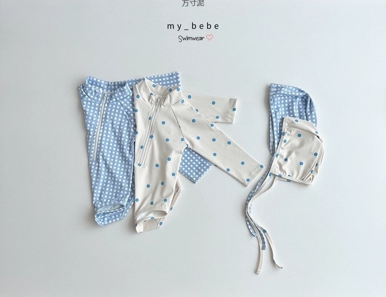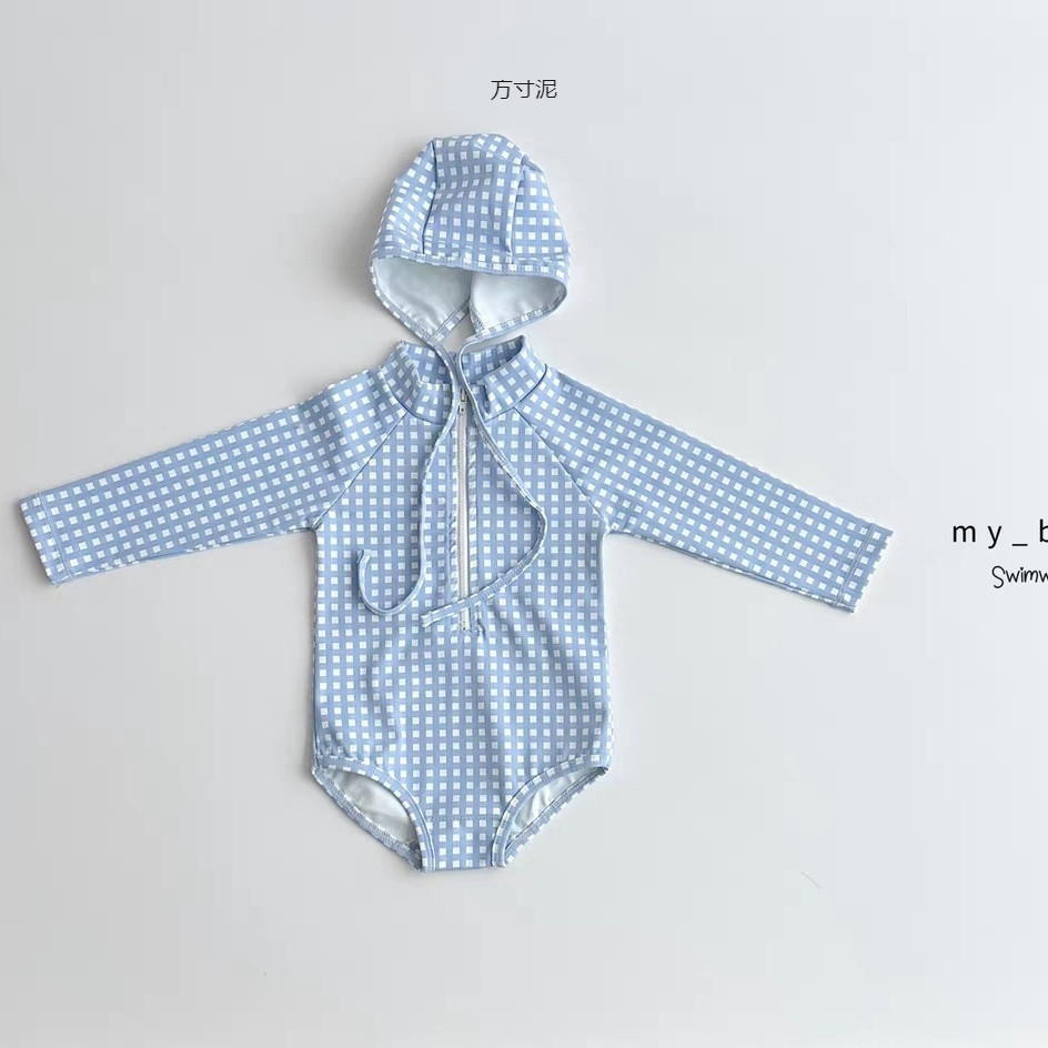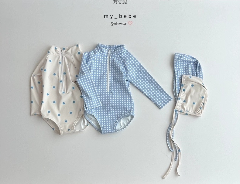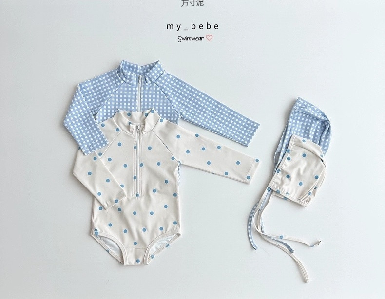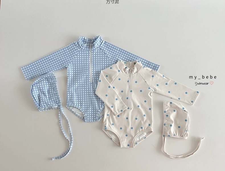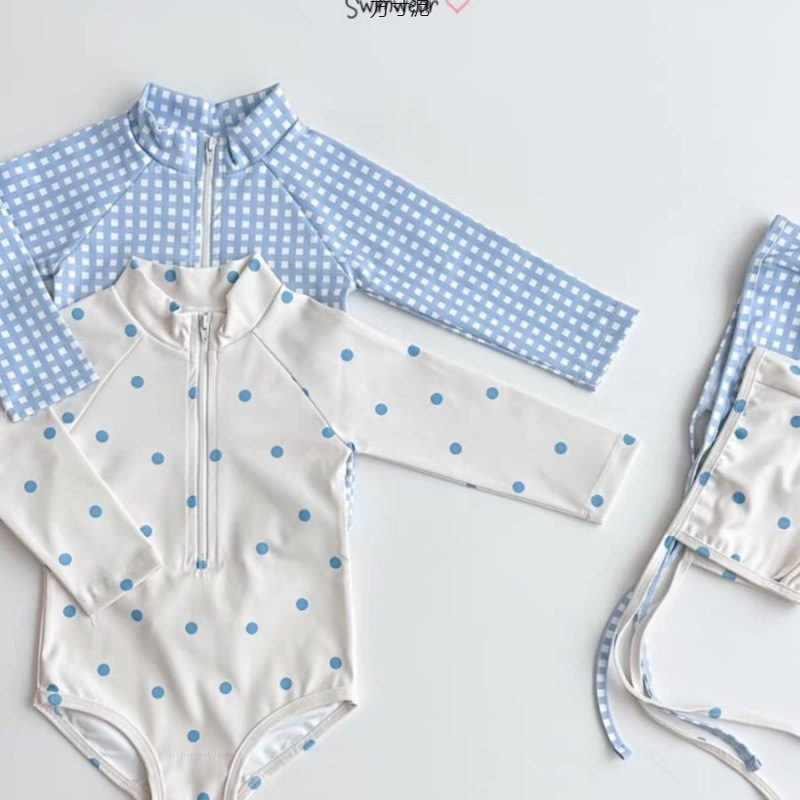 여름 새로운 아동 의류 공주 스타일 24 여름 새 여자 아기 격자 무늬 도트 귀여운 긴팔 원피스 수영복 도매스토어 가기