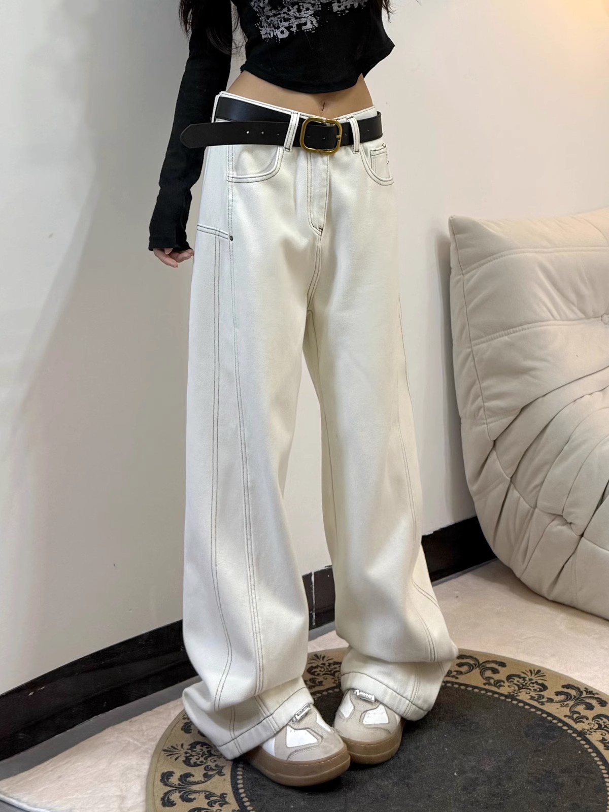 라이트 컬러 패션 올 매치 스트레이트 청바지 여자 2025 봄 새로운 느슨한 슬림 와이드 레그 올 매치 마체 테 팬츠