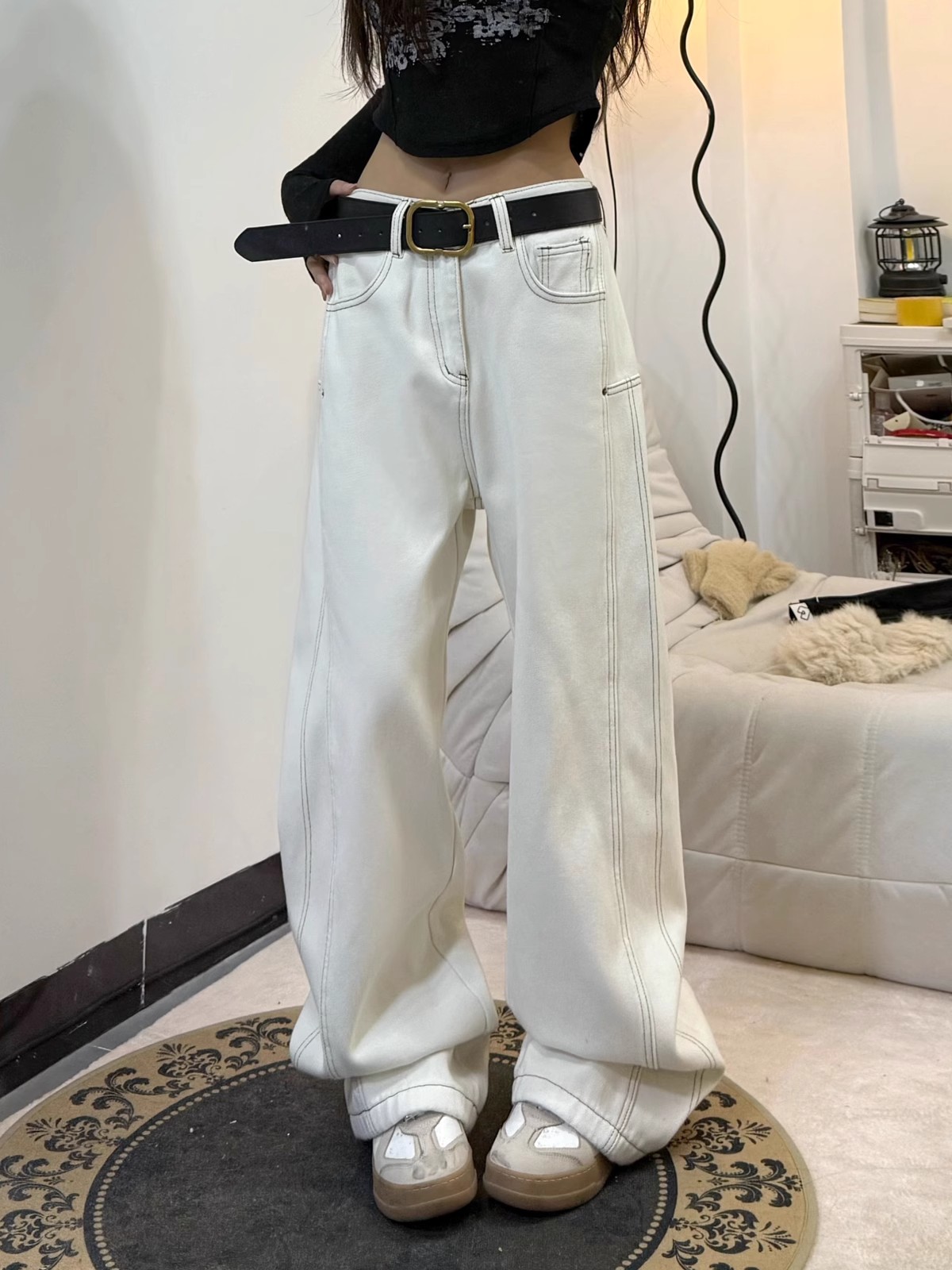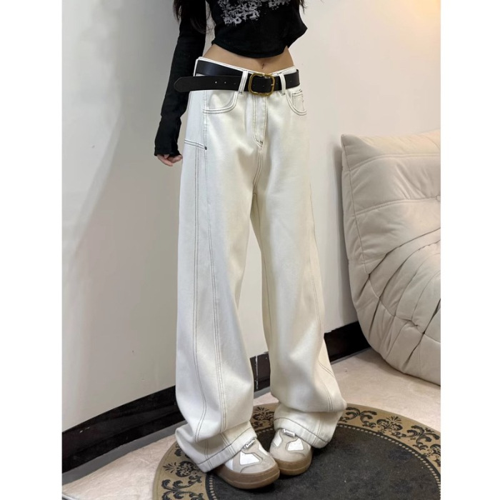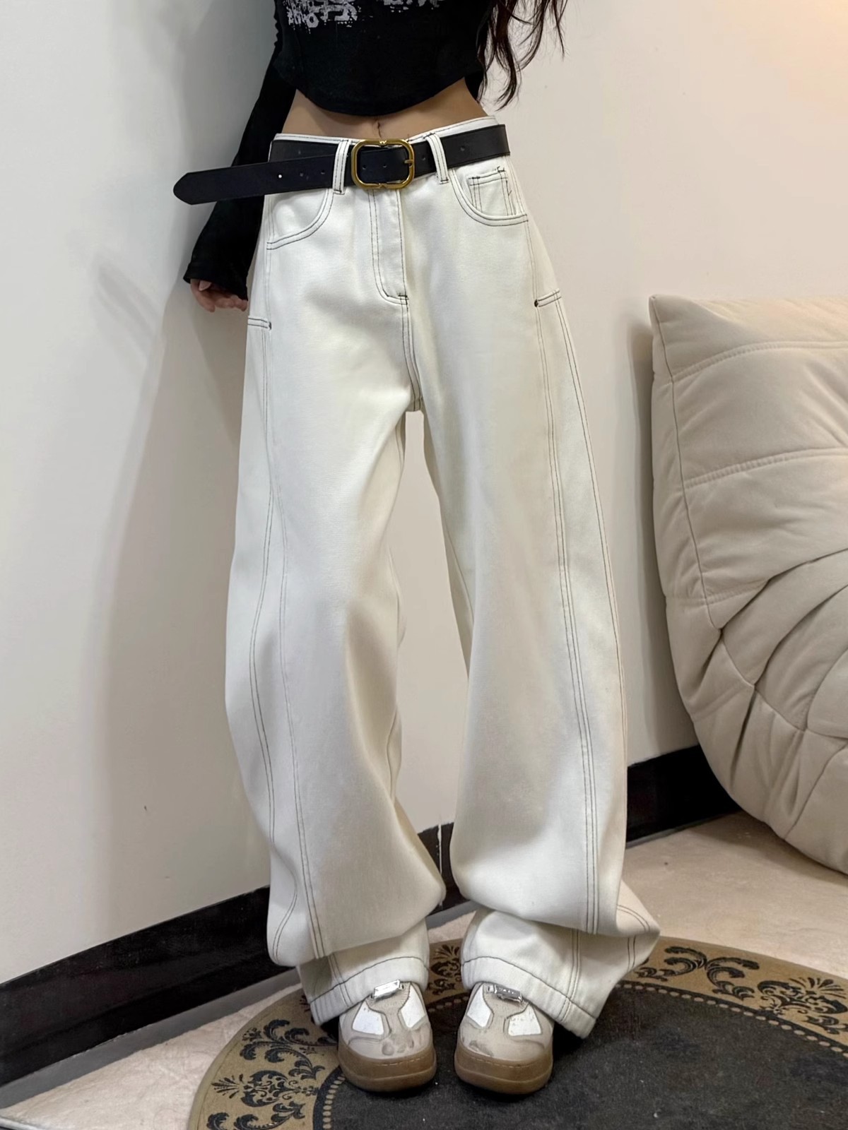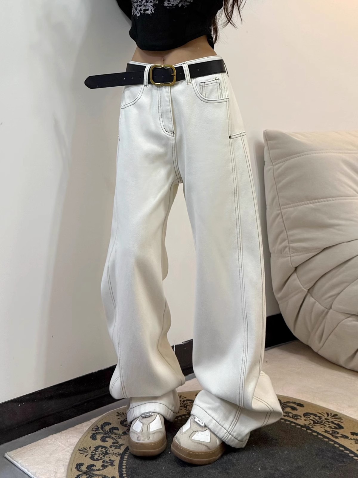 라이트 컬러 패션 올 매치 스트레이트 청바지 여자 2025 봄 새로운 느슨한 슬림 와이드 레그 올 매치 마체 테 팬츠스토어 가기