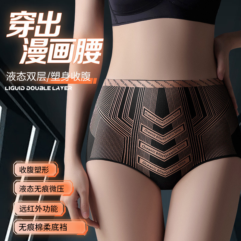 새로운 액체 두 배 층 가압 강한 작은 배 높은 허리 복부 바지 면 부드러운 Crotch 가벼운 플라스틱 바지 여성용