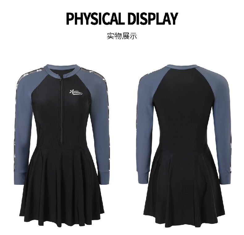 수영복 여성 플러스 사이즈 통통녀 슬림 고기로 덮인 원피스 스커트 긴소매 보수 복서 200kg 온천 수영복스토어 가기