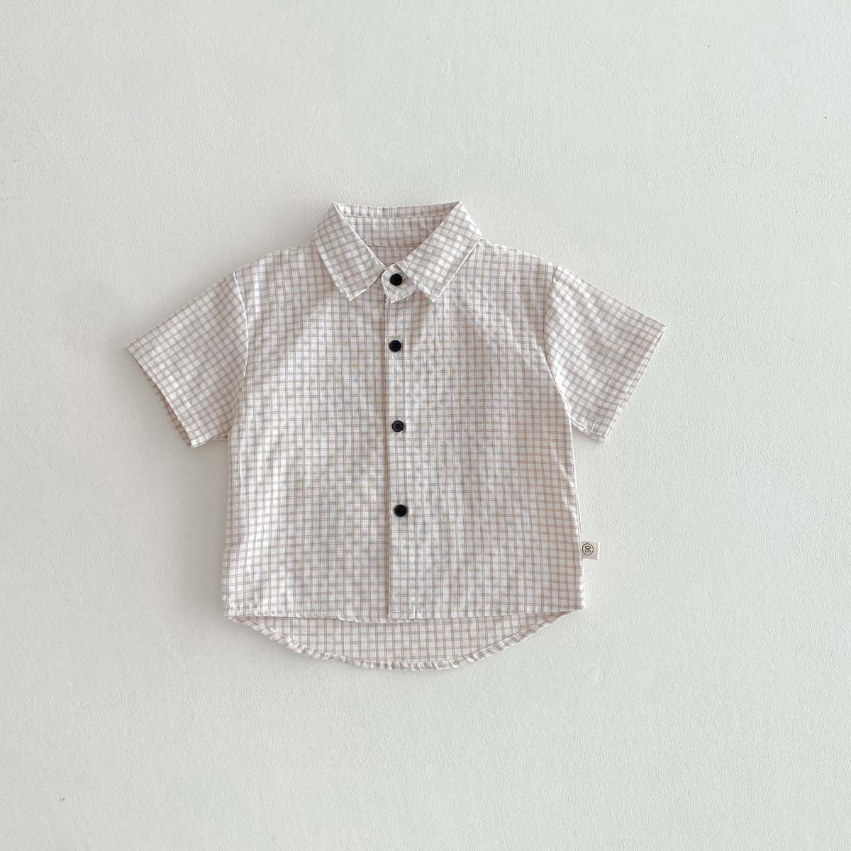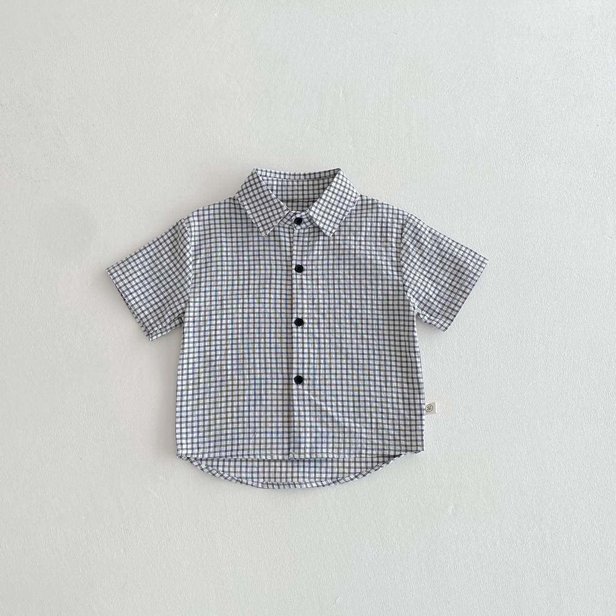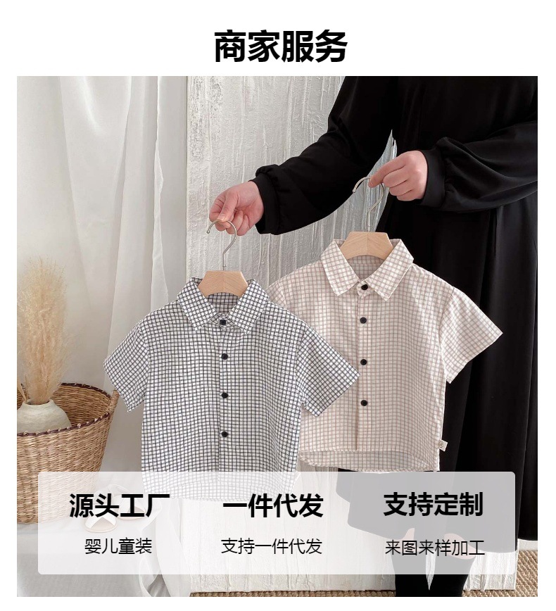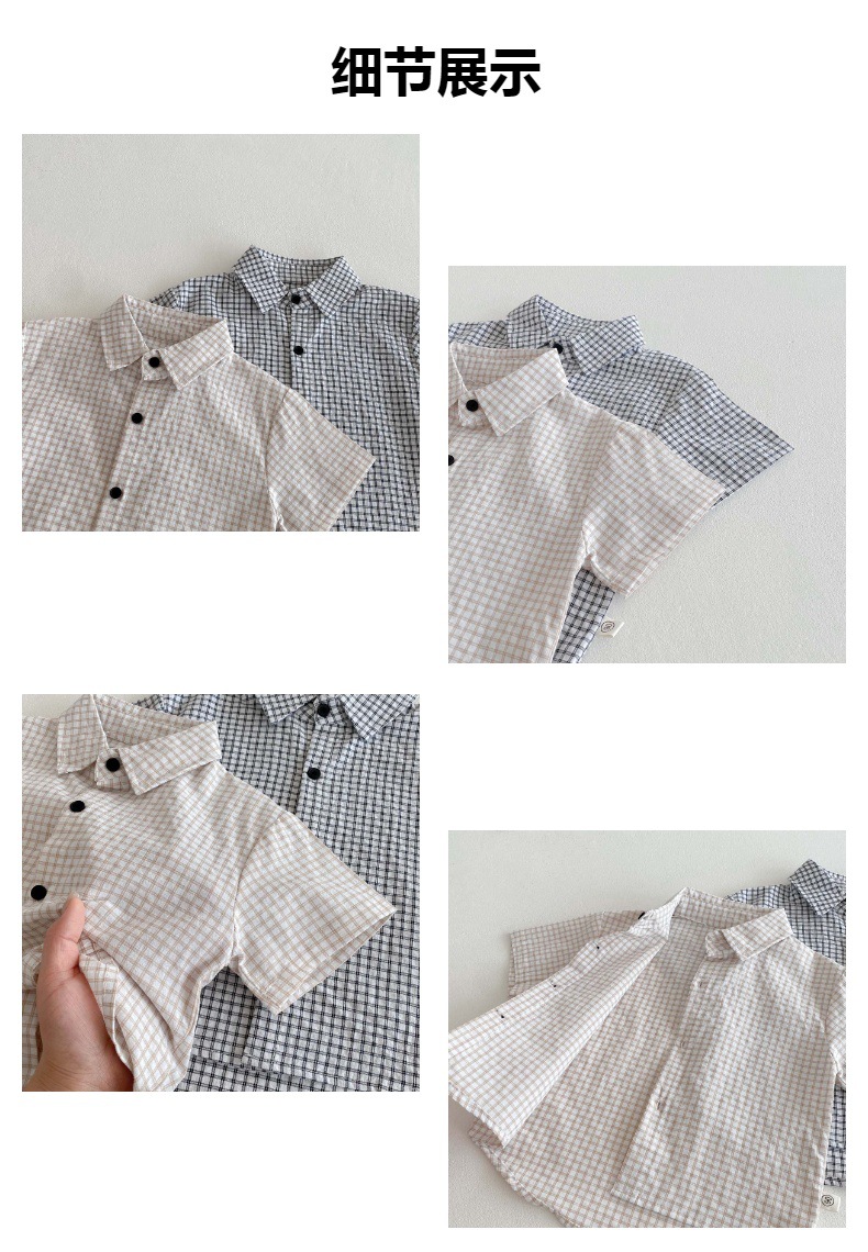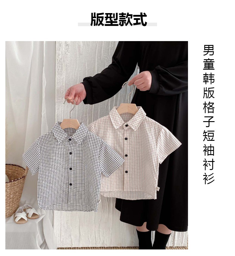 여름 여름 2025 소년 반팔 격자 무늬 셔츠 얇은 어린이 서양식 캐주얼 셔츠 어린이 마을 밖 유행 옷스토어 가기