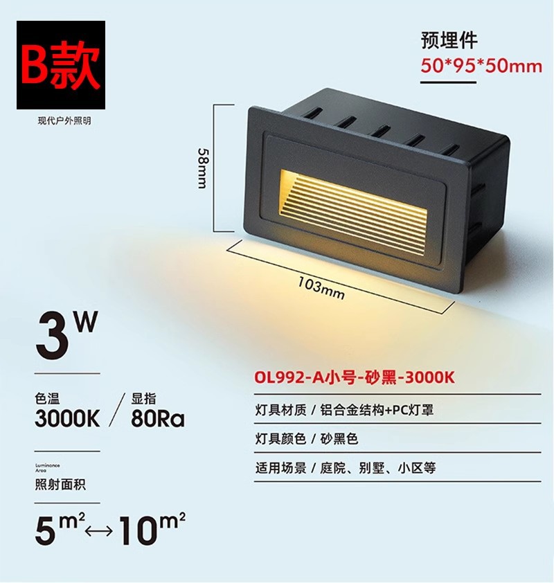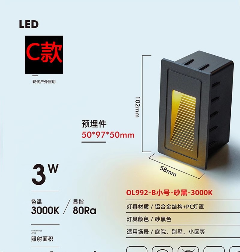 스퀘어 스텝 조명 led 임베디드 발 조명 코너 조명 야외 방수 지하 조명 계단 통로 계단 조명스토어 가기