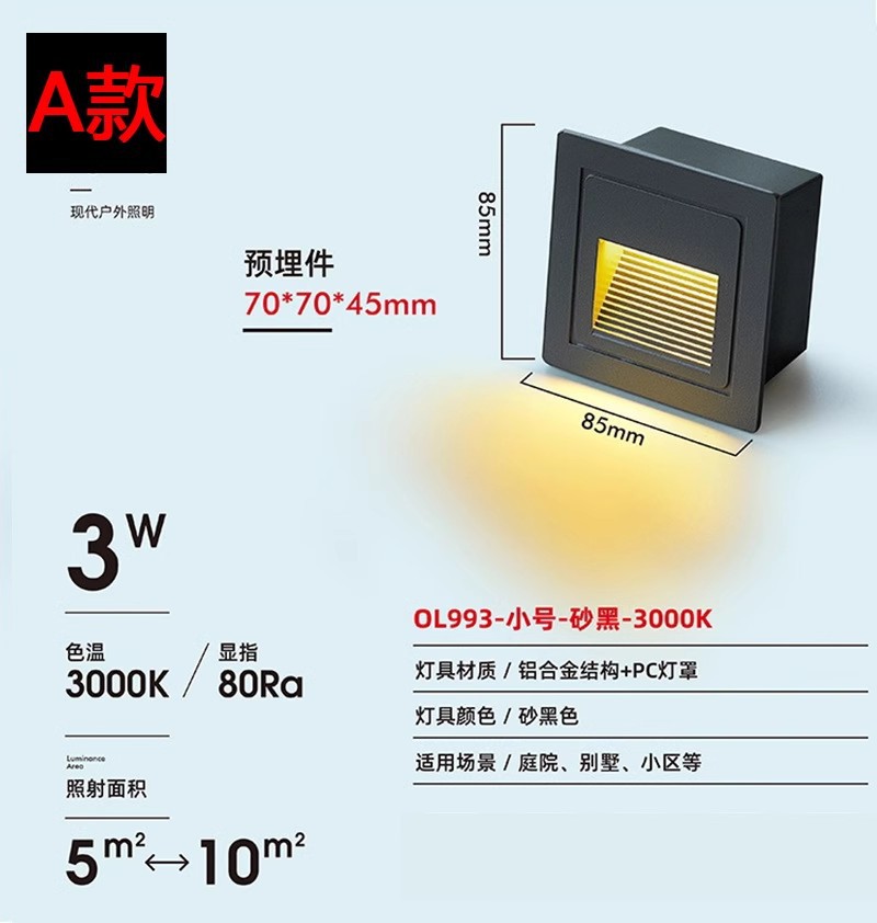 스퀘어 스텝 조명 led 임베디드 발 조명 코너 조명 야외 방수 지하 조명 계단 통로 계단 조명
