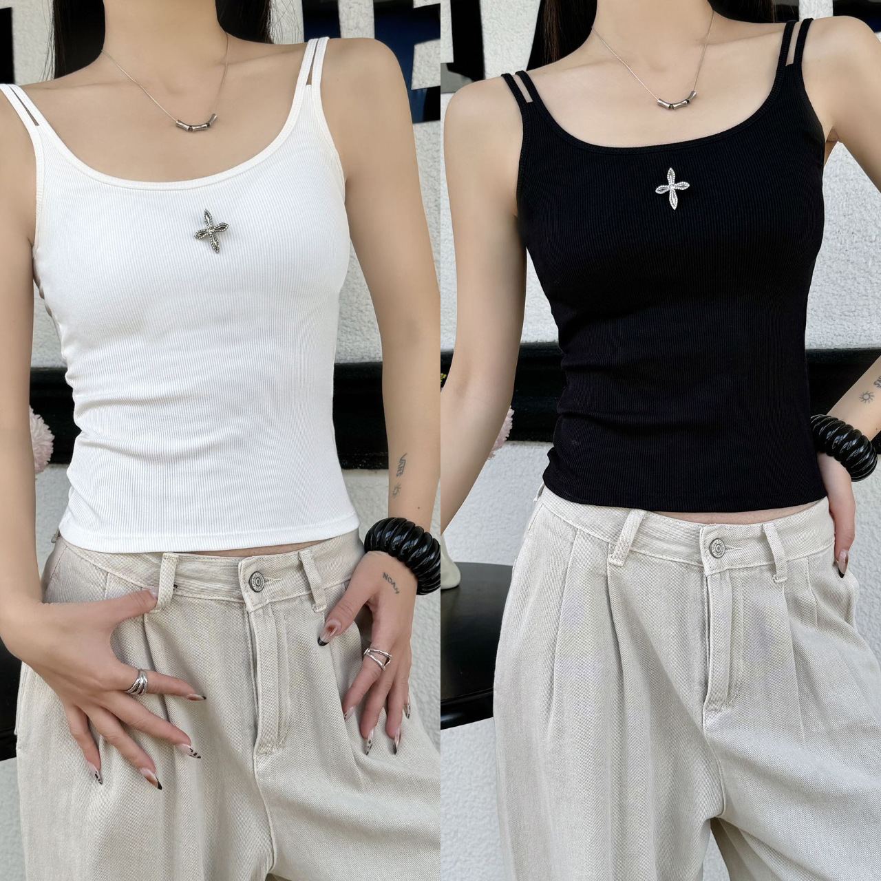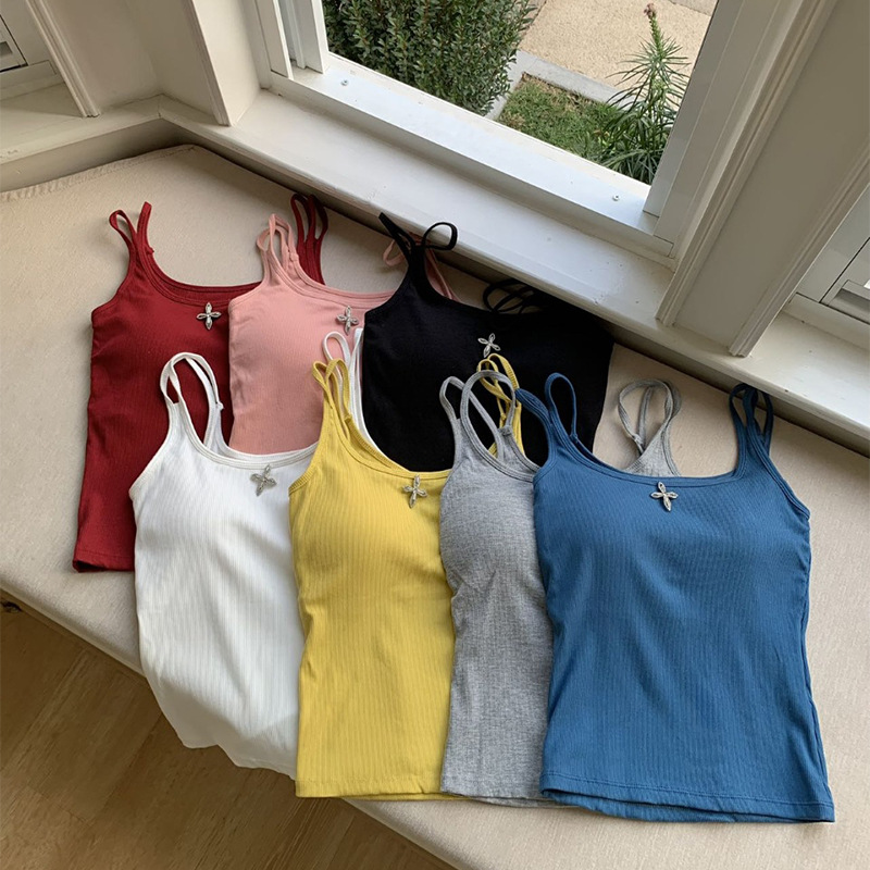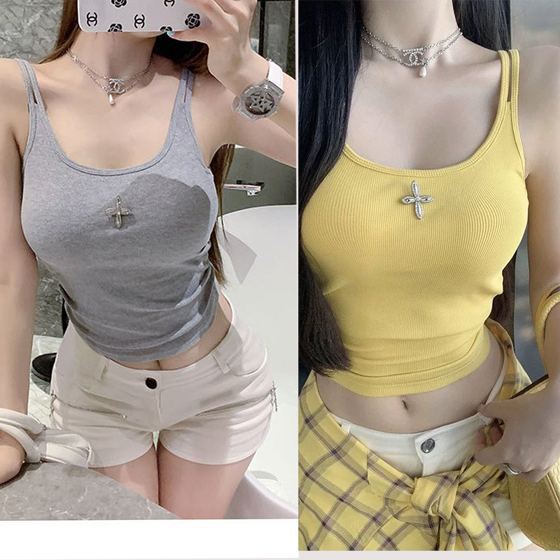 아메리칸 스타일 핫 걸 카미솔 여성 여름 가슴 패드 라운드 넥 슬림 핏 슬림베이스 내부 외부 탑 새로운 스타일스토어 가기