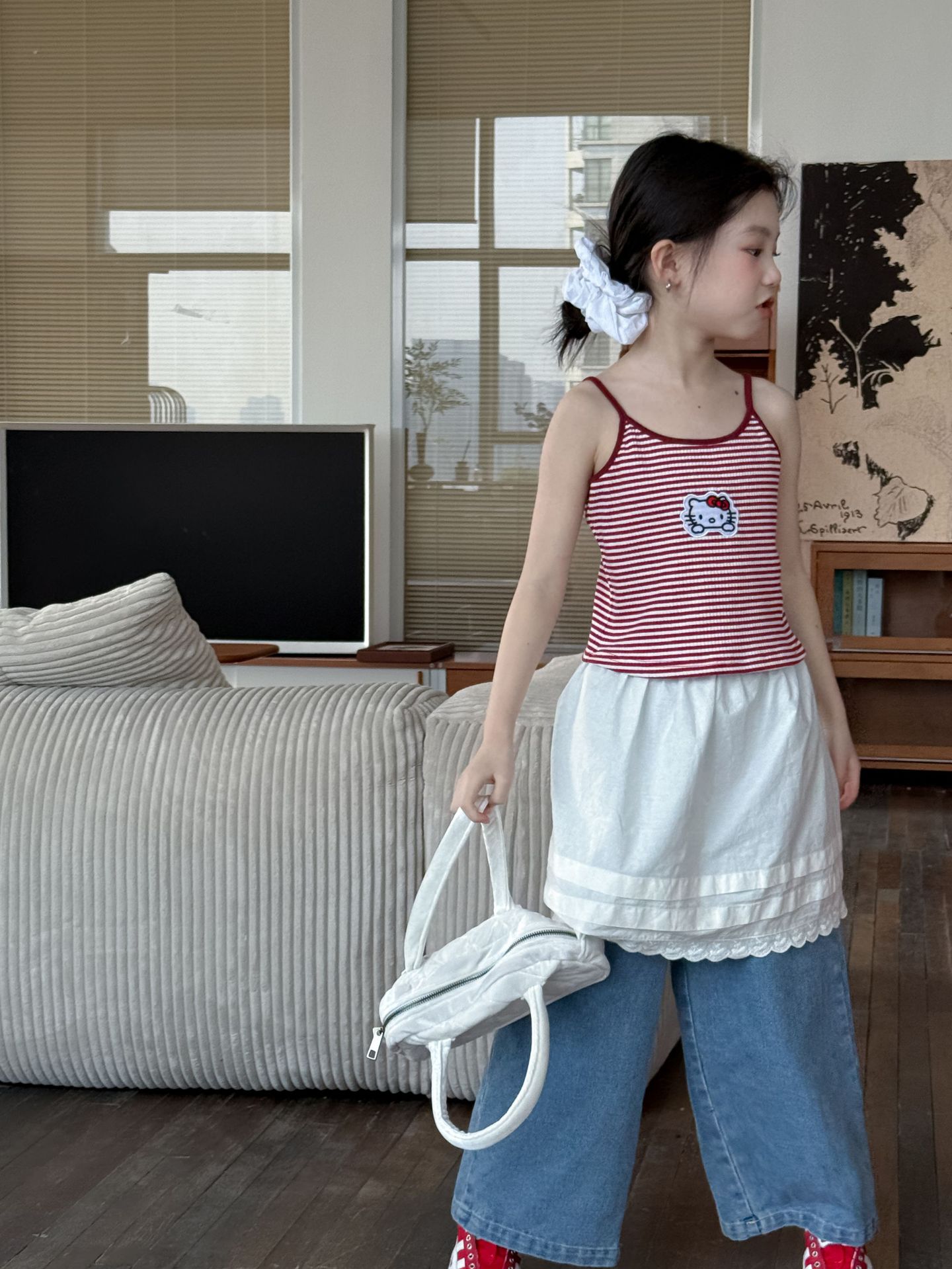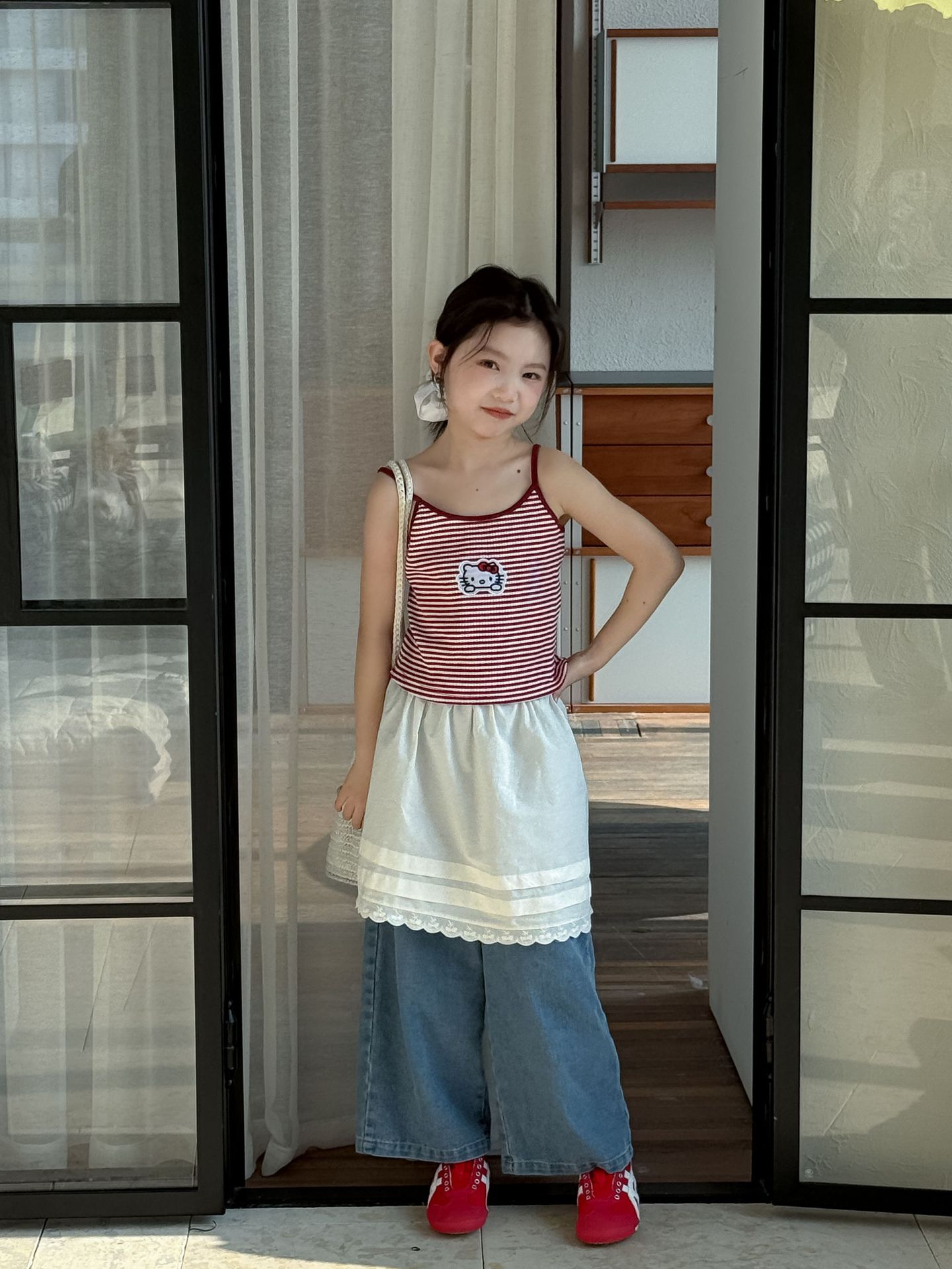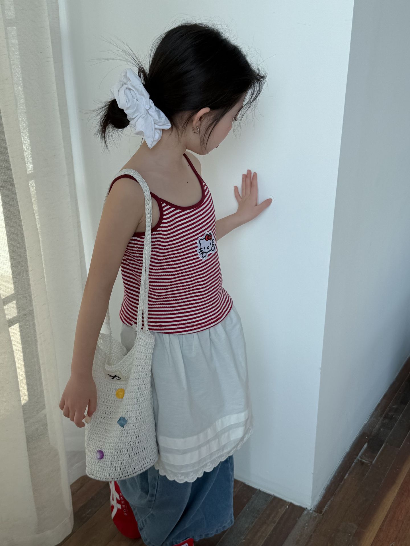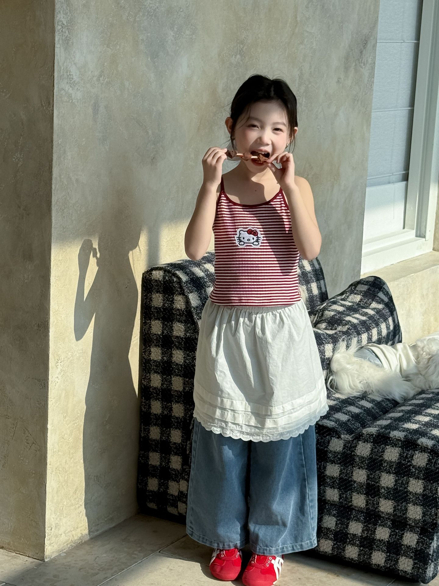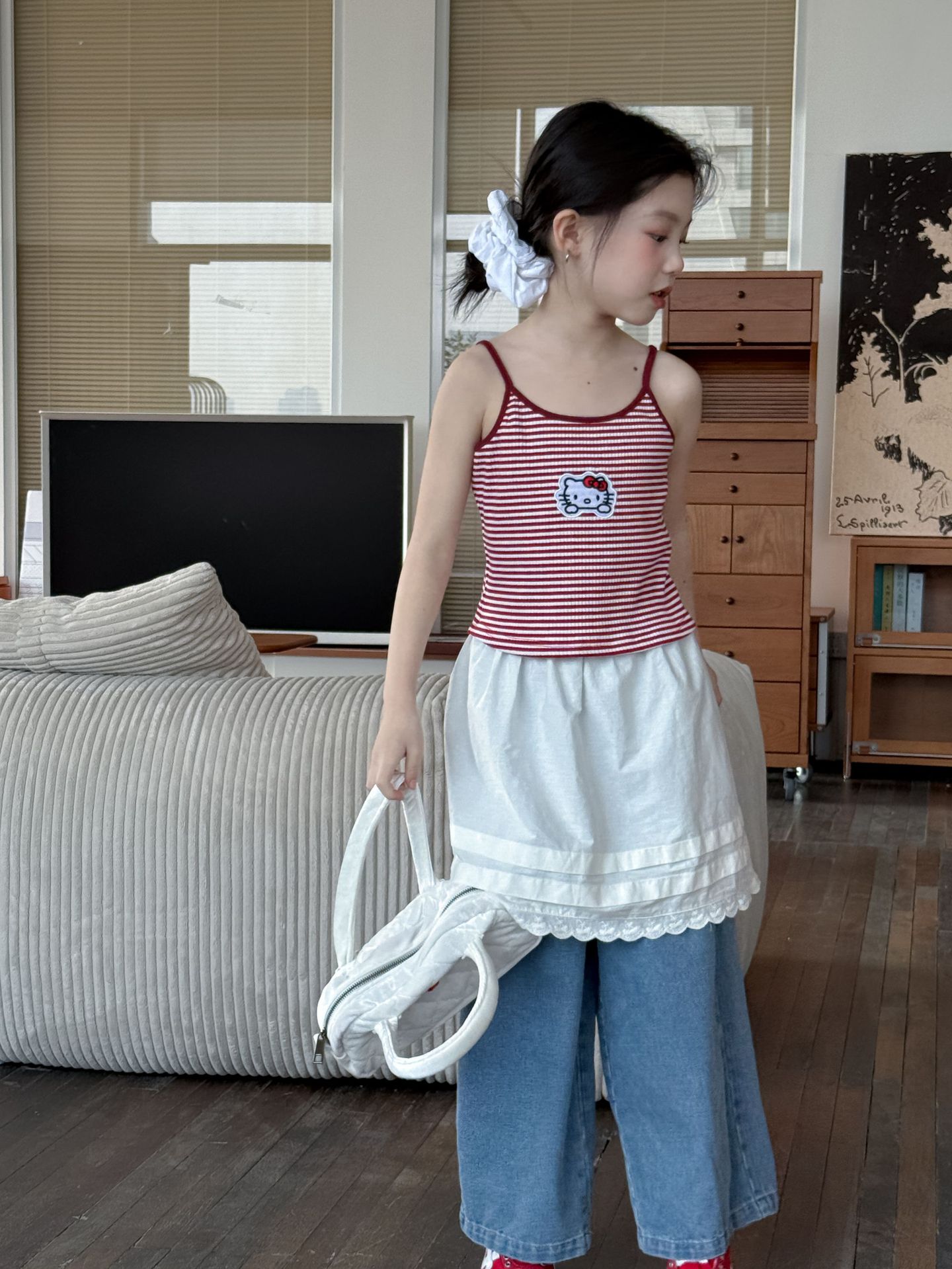 어린이 바지 2025 여름 새 소녀 레이스 앞치마 커튼 어린이 스택 스커트 청바지 세트 투피스 세트스토어 가기