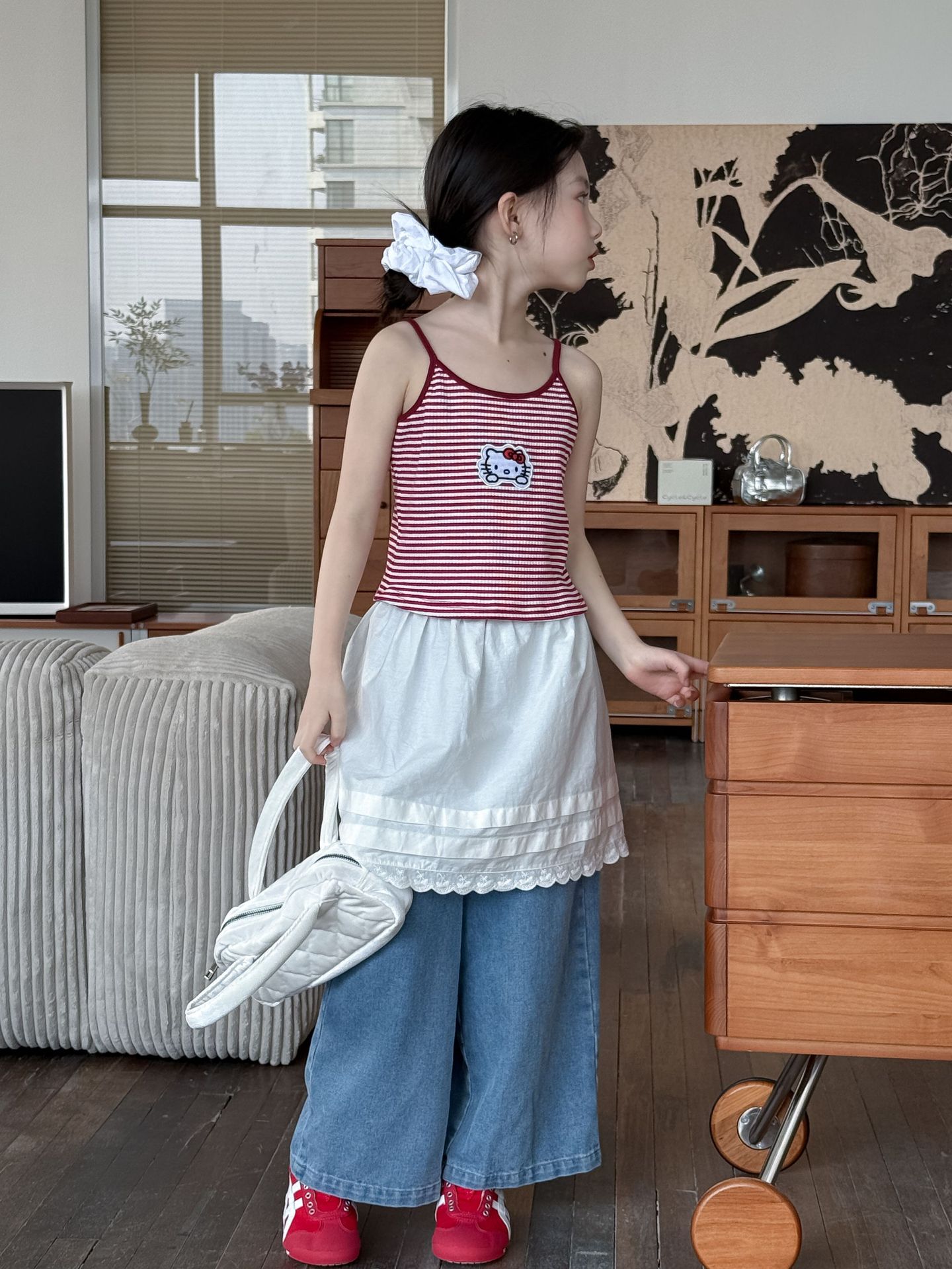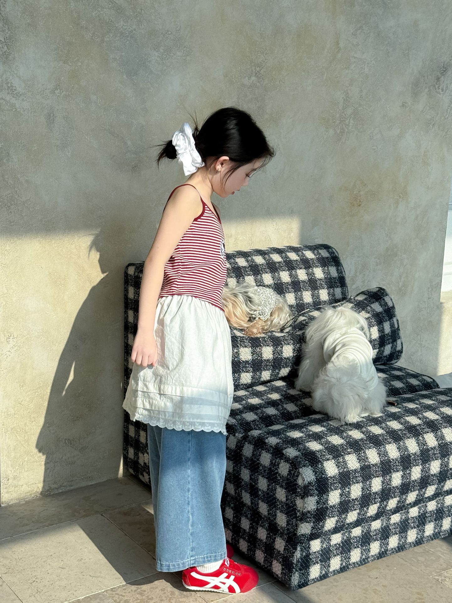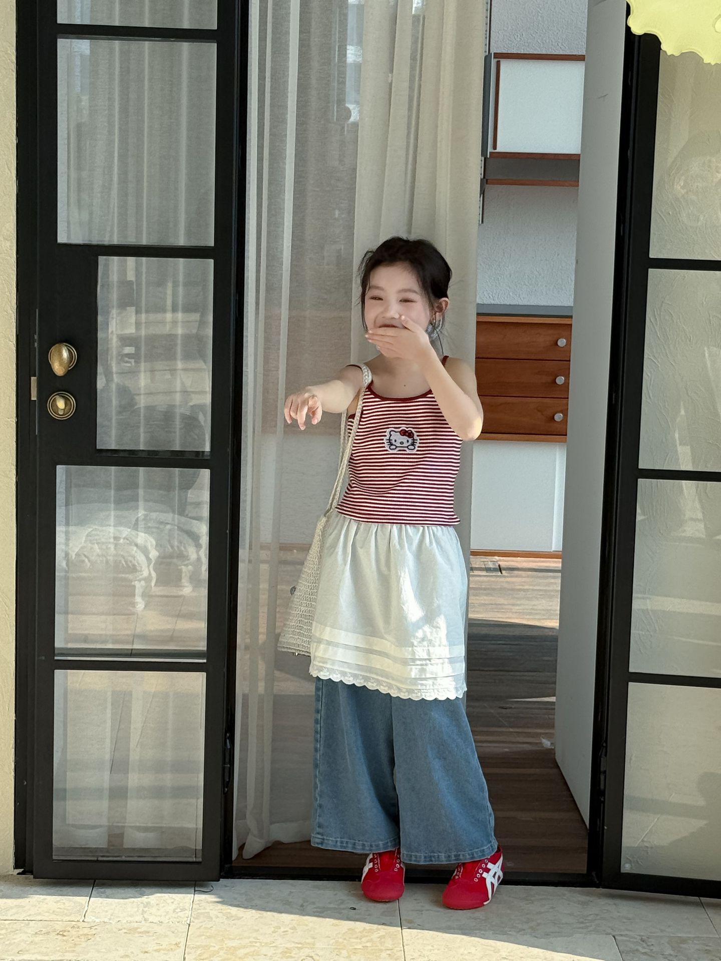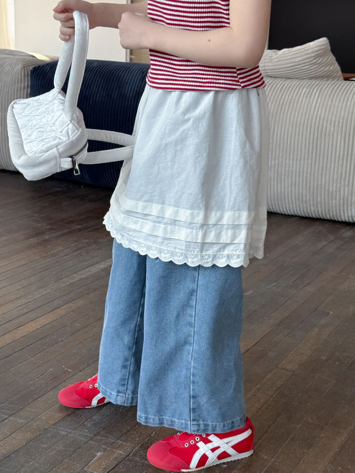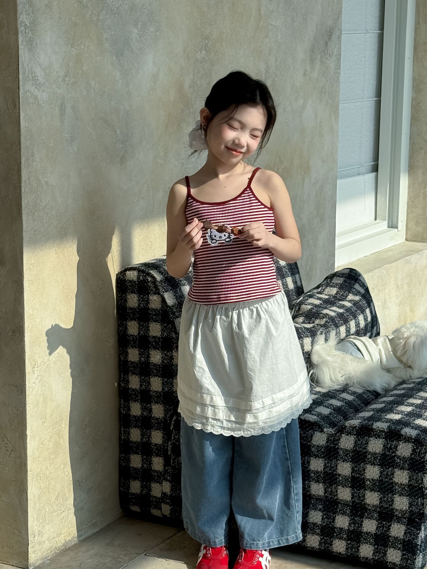 어린이 바지 2025 여름 새 소녀 레이스 앞치마 커튼 어린이 스택 스커트 청바지 세트 투피스 세트스토어 가기