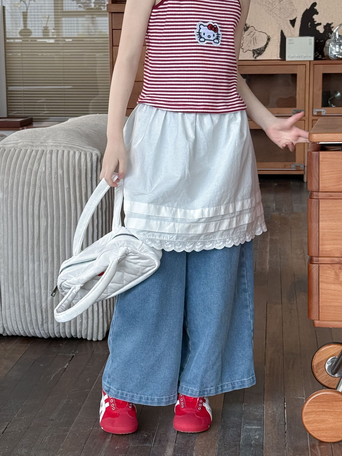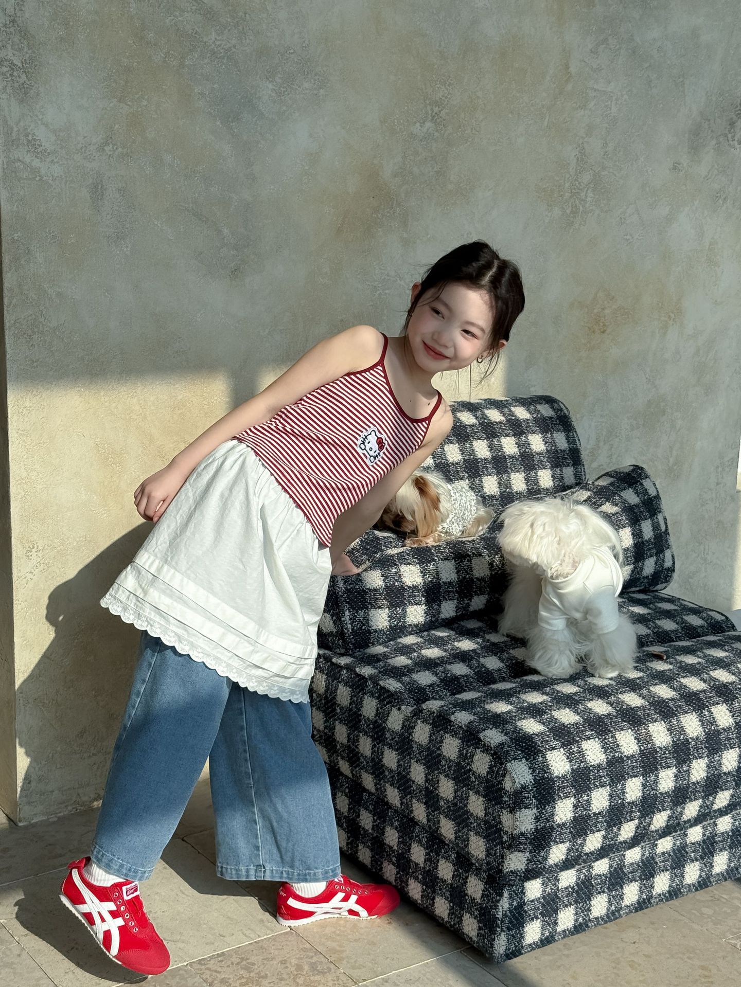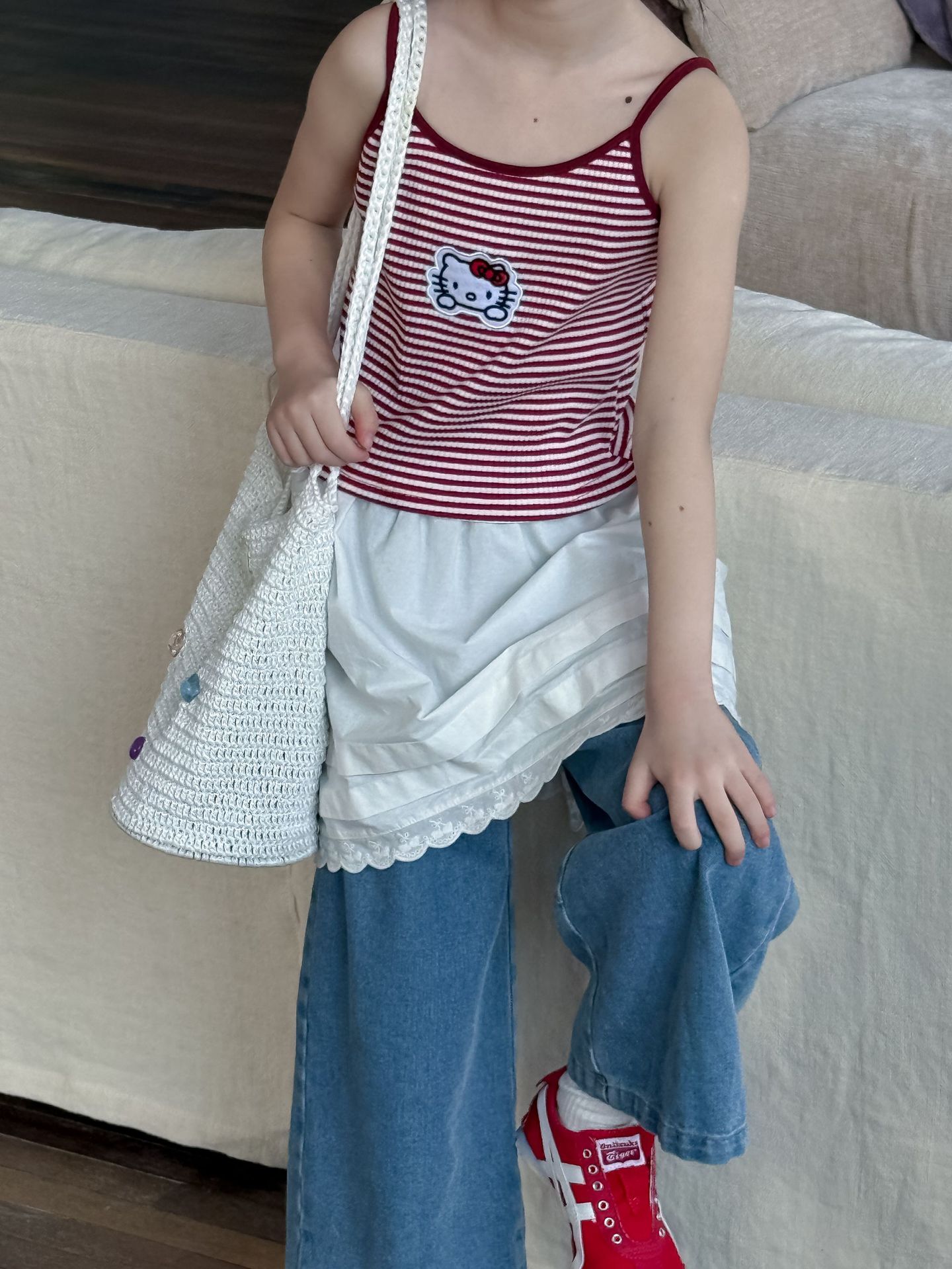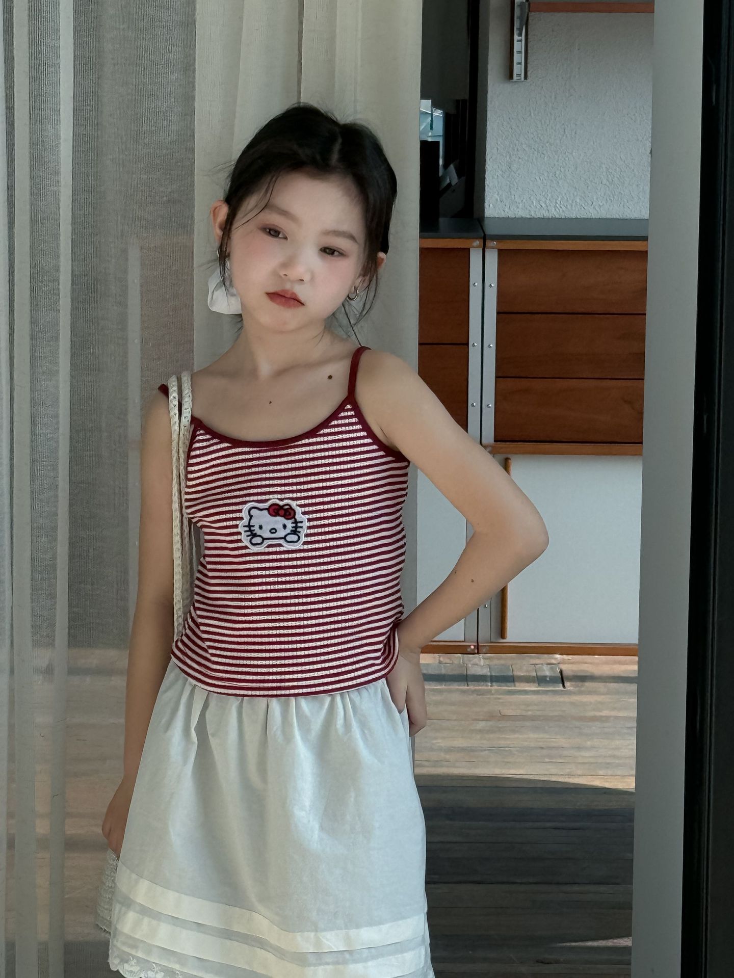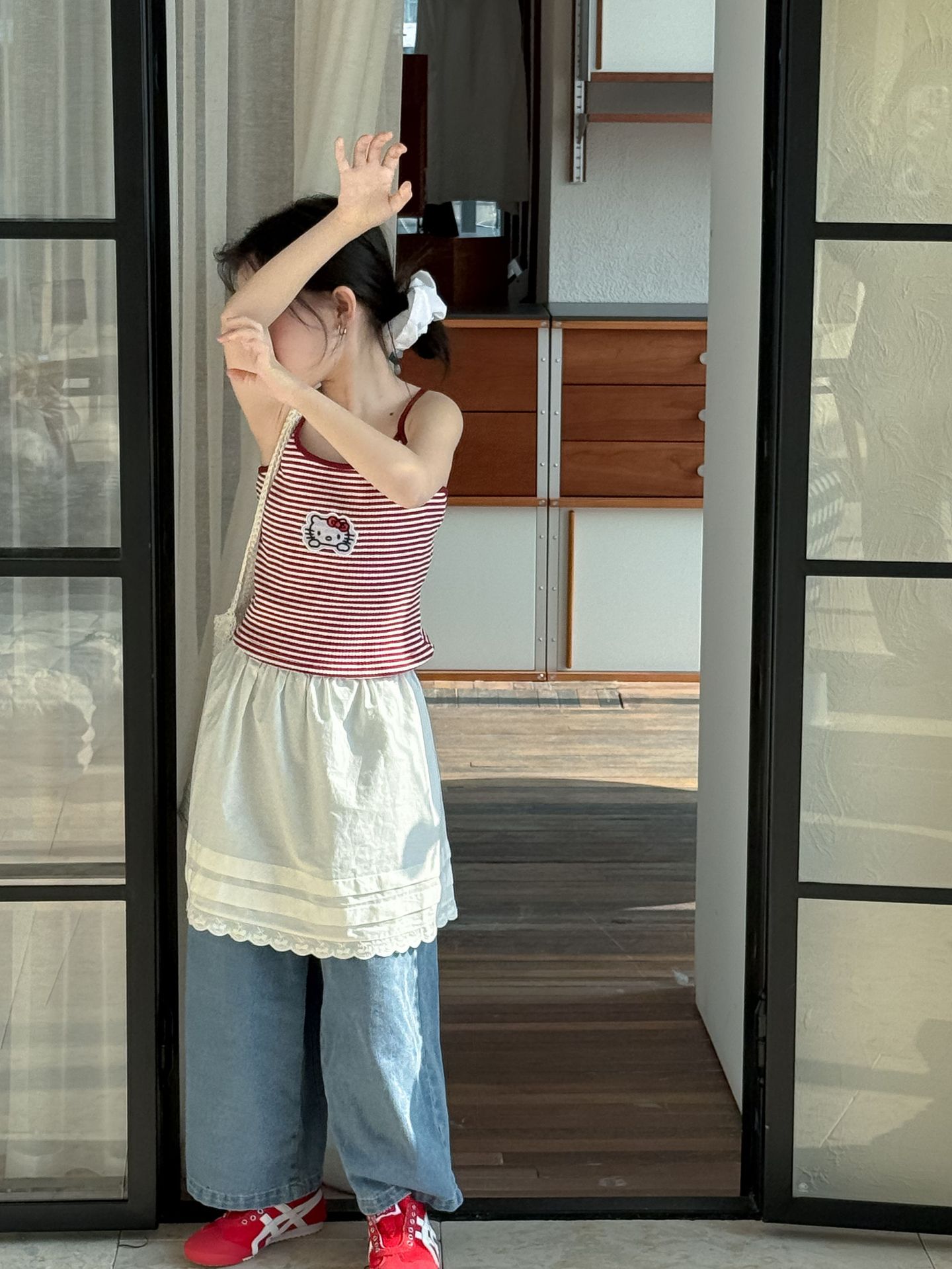 어린이 바지 2025 여름 새 소녀 레이스 앞치마 커튼 어린이 스택 스커트 청바지 세트 투피스 세트스토어 가기
