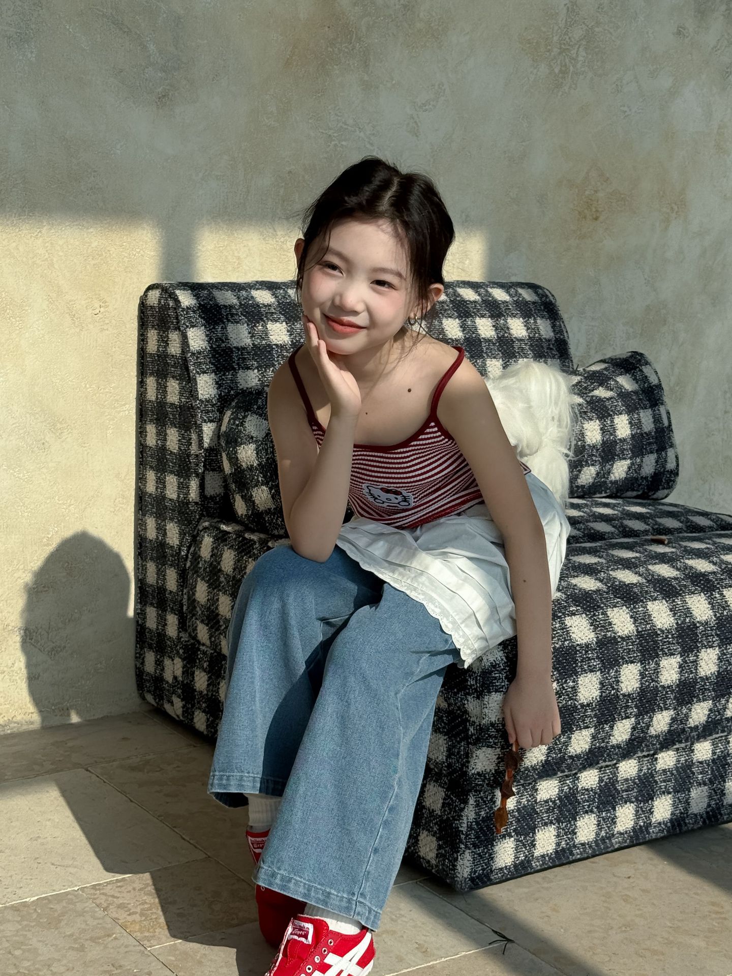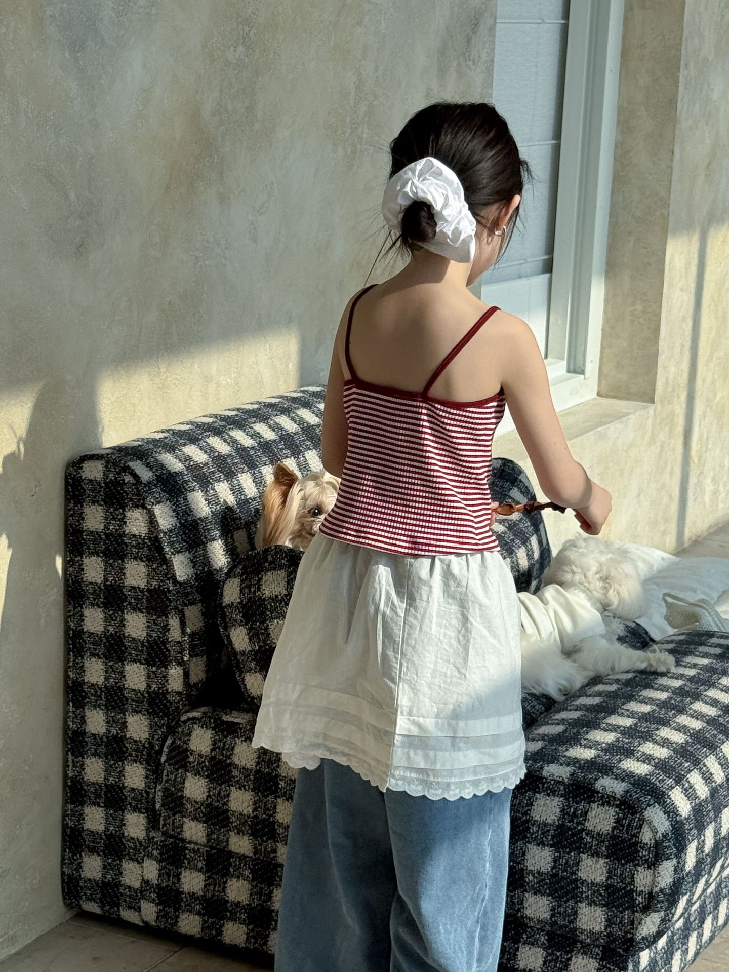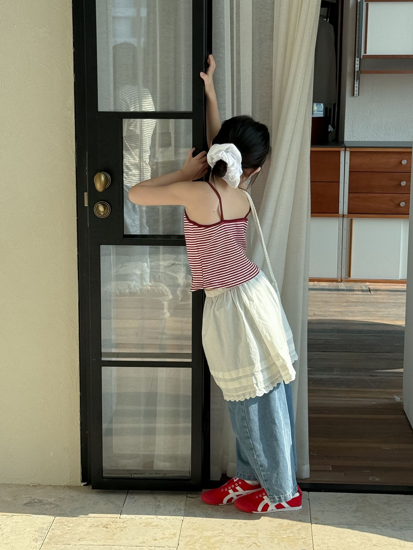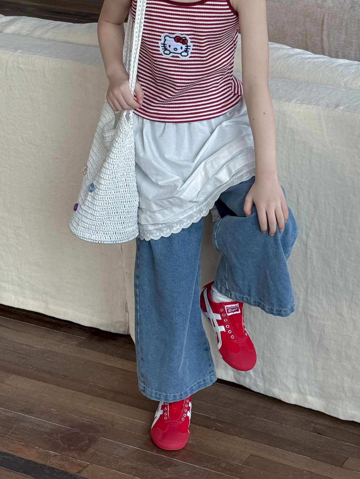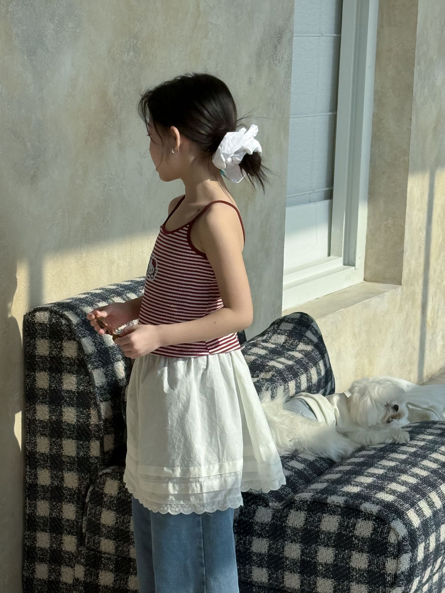 어린이 바지 2025 여름 새 소녀 레이스 앞치마 커튼 어린이 스택 스커트 청바지 세트 투피스 세트스토어 가기