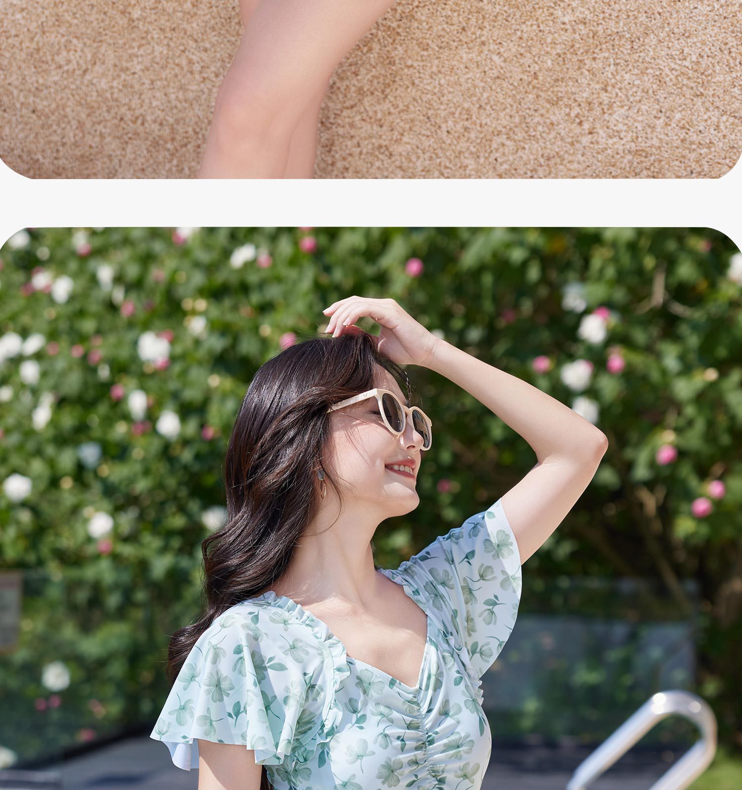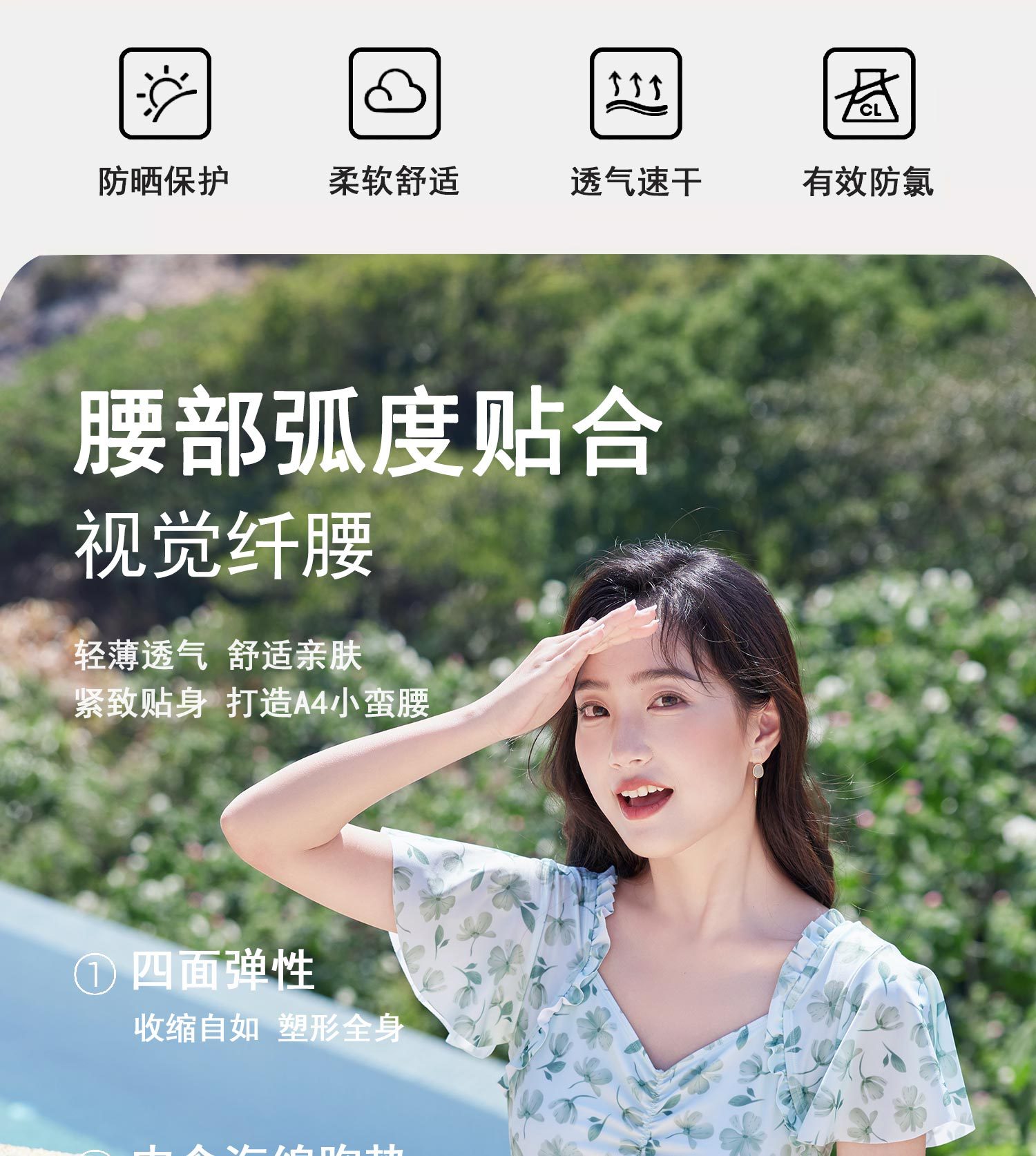 2025 새로운 스타일 보수적 배꼽 커버 슬림 핏 수영복 플랫 코너 수영복 온천 작은 꽃 수영복