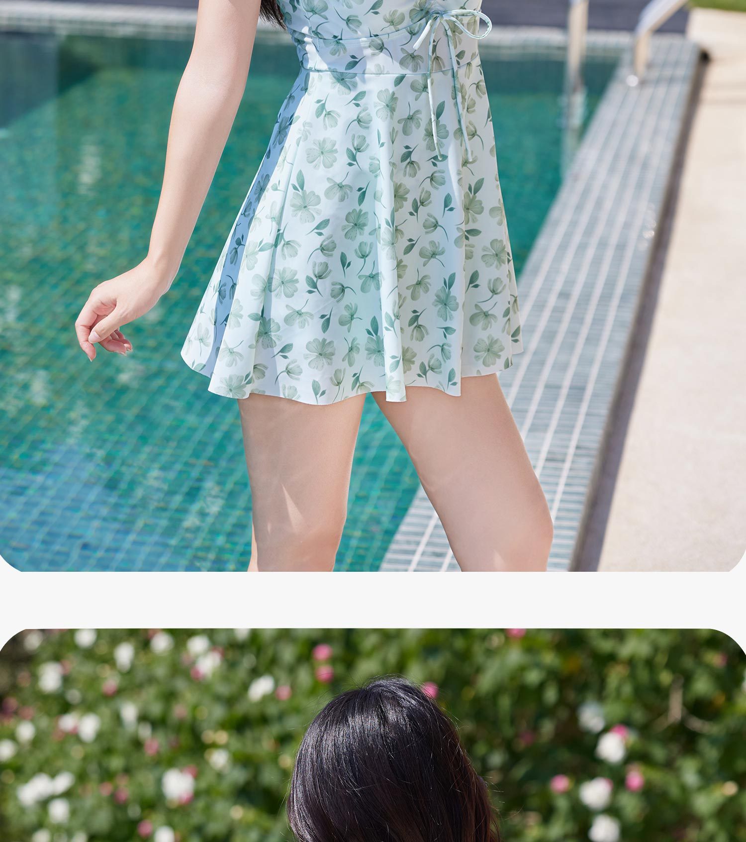 2025 새로운 스타일 보수적 배꼽 커버 슬림 핏 수영복 플랫 코너 수영복 온천 작은 꽃 수영복스토어 가기