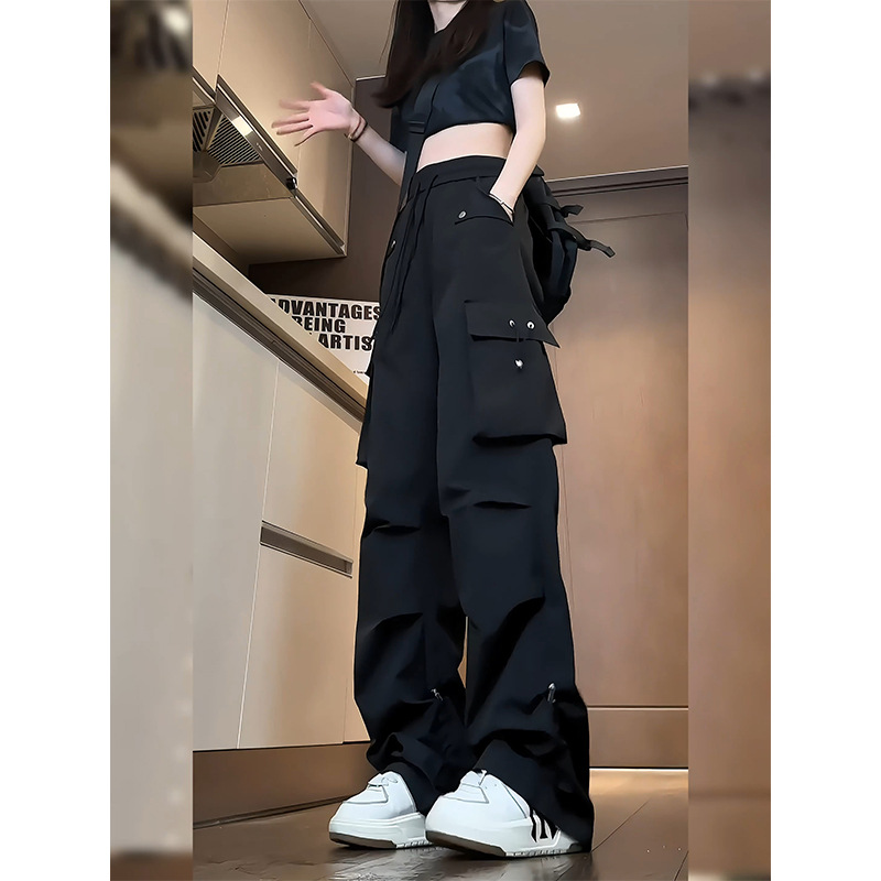 블랙 오버올 여성 여름 얇은 트렌디 브랜드 아메리칸 기능성 방수 어썰트 팬츠 멀티 포켓 스트레이트 캐주얼 바지